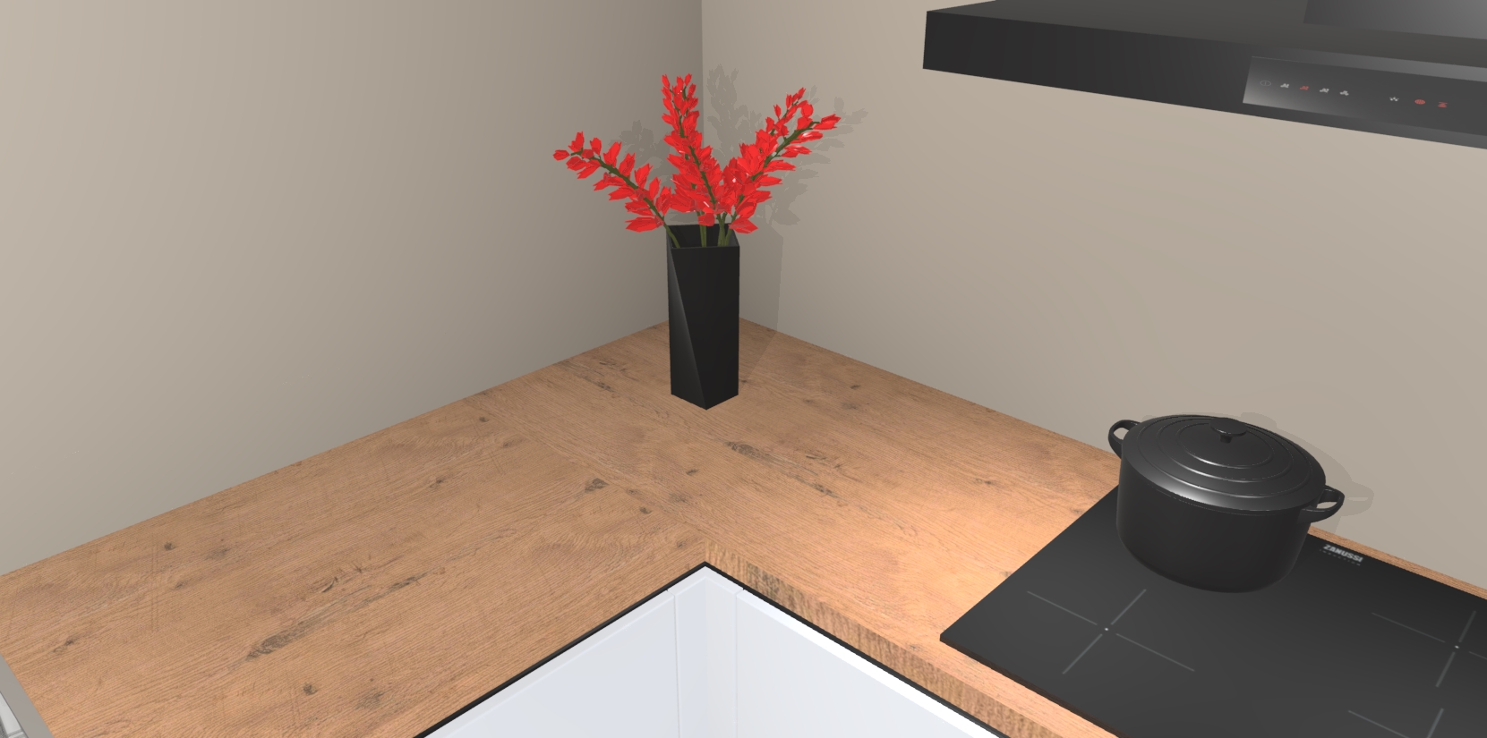 - Bij een hoekwerkblad zijn de hoeken in gevreesd en op maat gemaakt