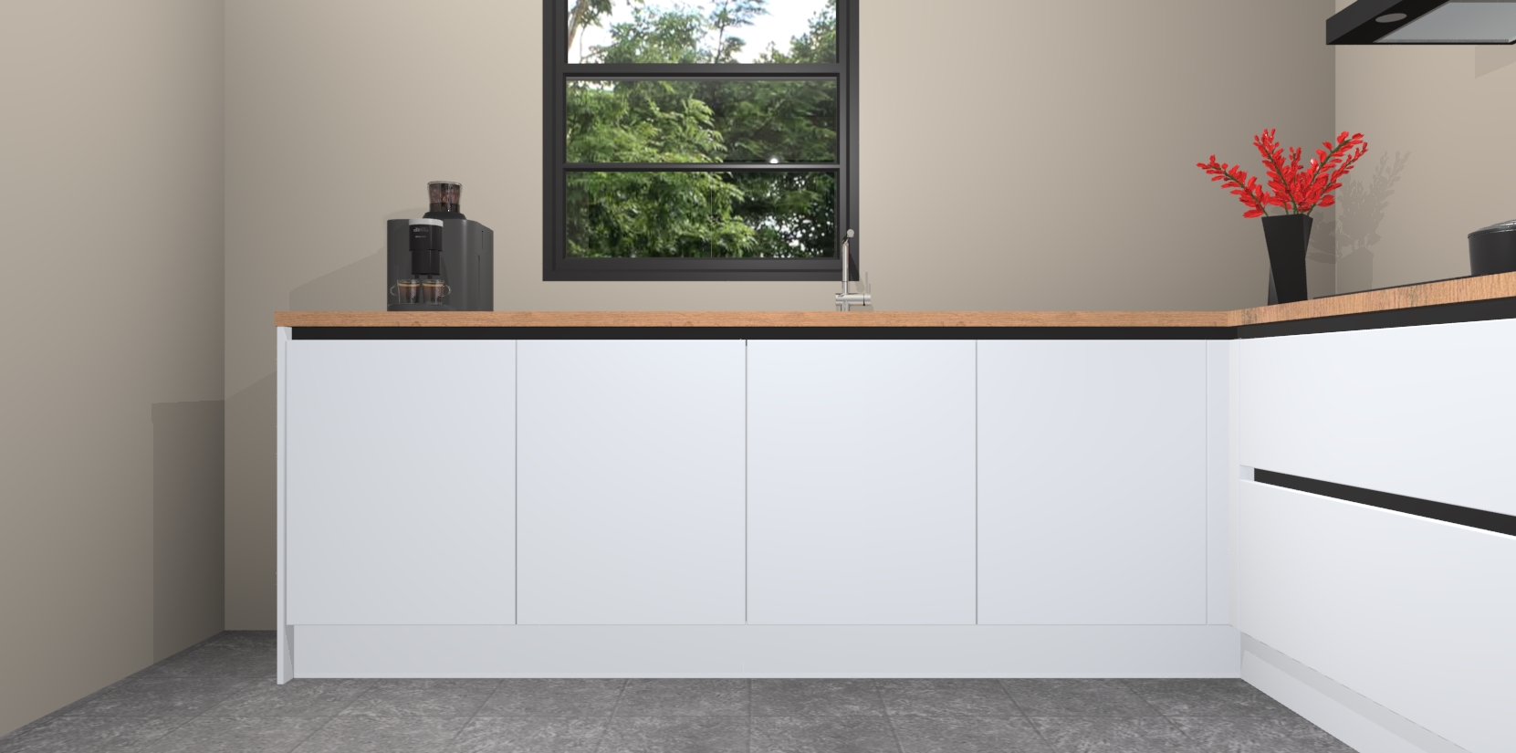 De Sneeuwwitte greeploze keuken Porto heeft 5 ingebouwde apparaten - een oven, inductiekookplaat, afzuigkap, vaatwasser en koelkast - waarmee u in een handomdraai heerlijke gerechten bereidt. Soft-close deuren zorgen voor nog meer functionaliteit en gemak. En dit alles voor een onverslaanbaar vaste prijs. En als u nu bestelt, duurt de levering maar 7 weken! Wat nog ongelooflijker is, is dat onze kasten voor gemonteerd worden geleverd.