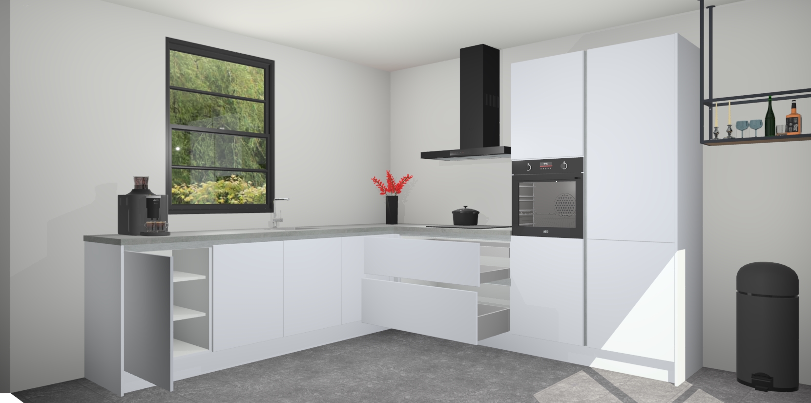 De Sneeuwwitte greeploze keuken Porto heeft 5 ingebouwde apparaten - een oven, inductiekookplaat, afzuigkap, vaatwasser en koelkast - waarmee u in een handomdraai heerlijke gerechten bereidt. Soft-close deuren zorgen voor nog meer functionaliteit en gemak. En dit alles voor een onverslaanbaar vaste prijs. En als u nu bestelt, duurt de levering maar 7 weken! Wat nog ongelooflijker is, is dat onze kasten voor gemonteerd worden geleverd.