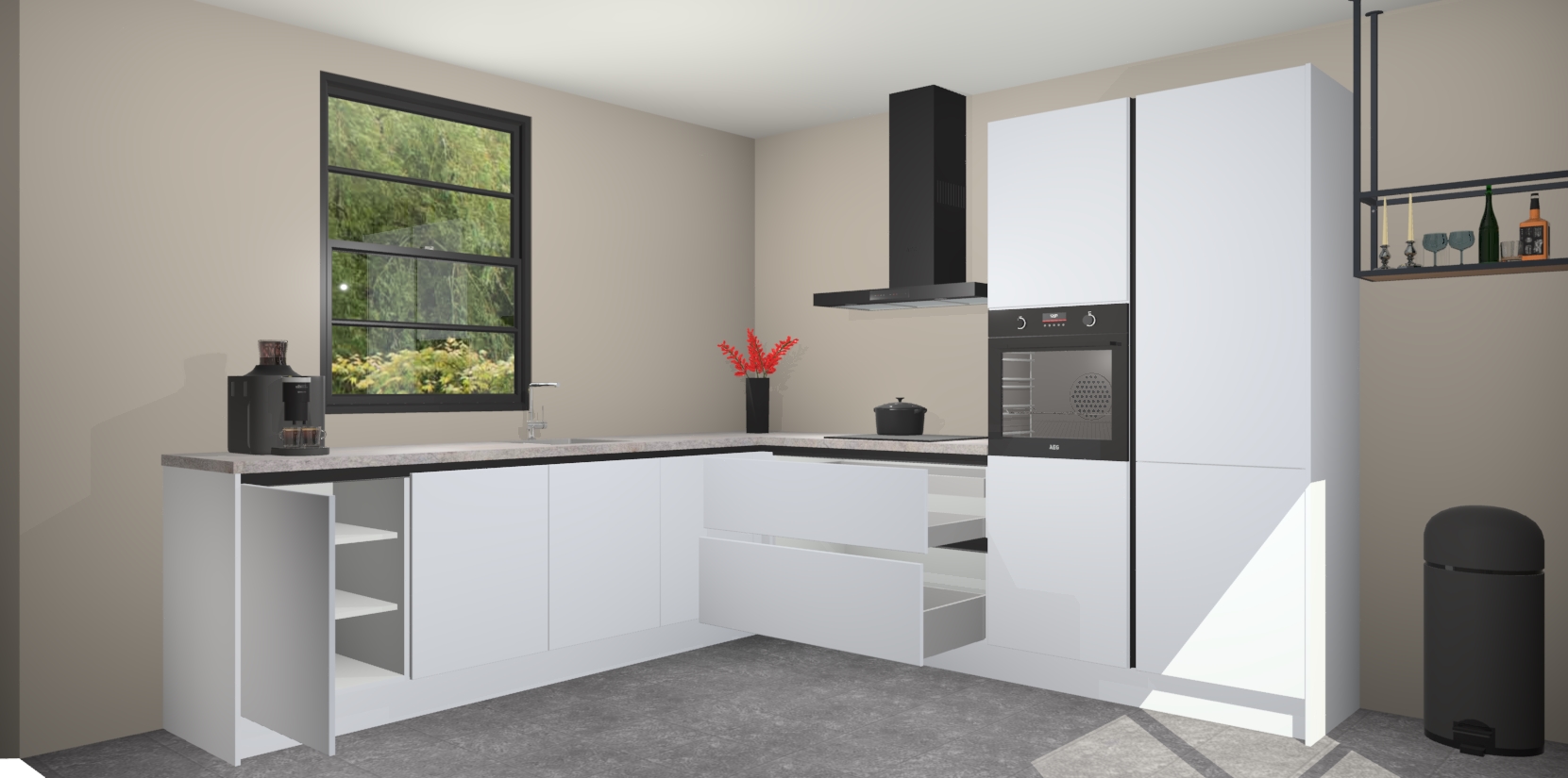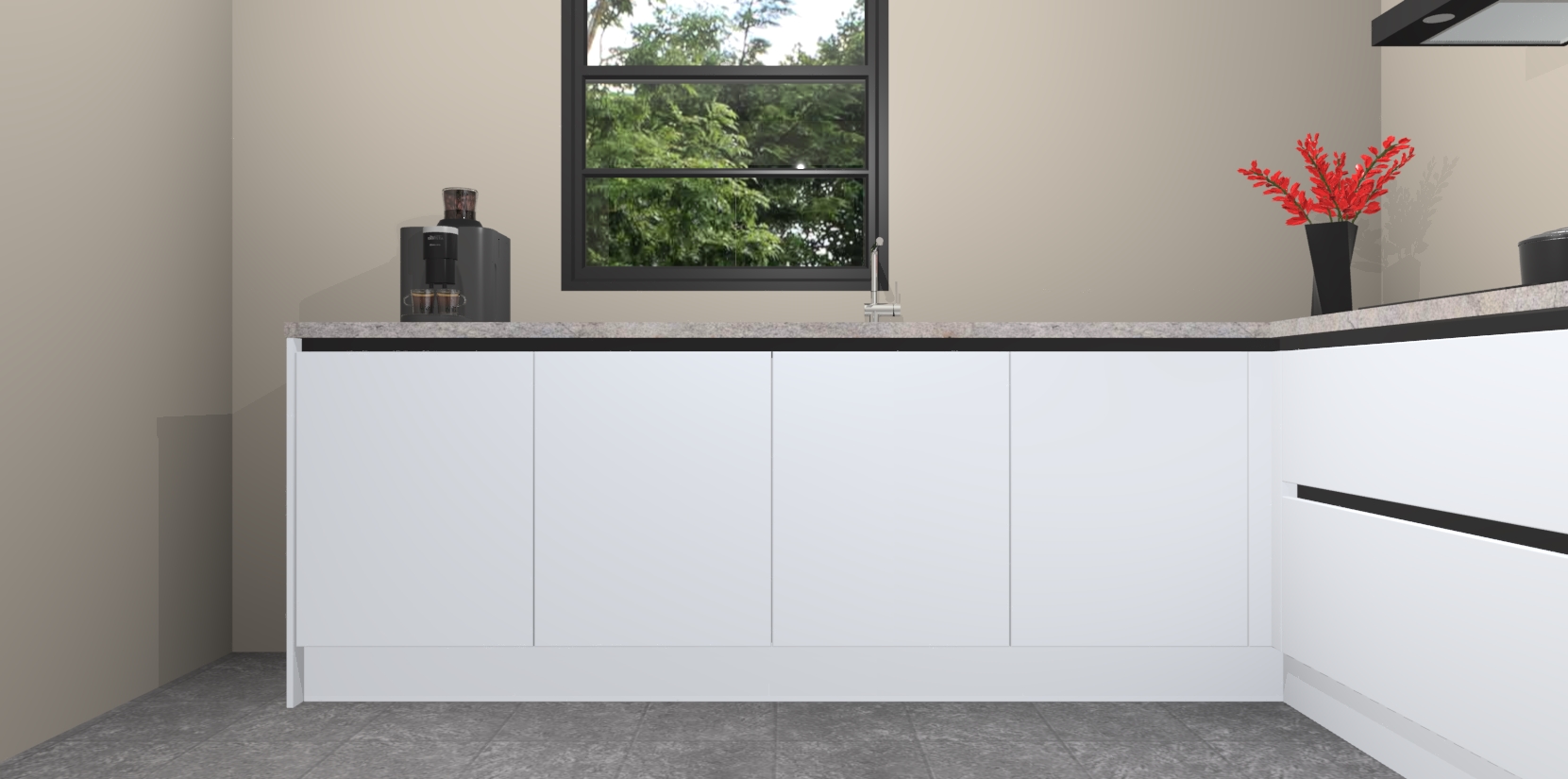 De Sneeuwwitte greeploze keuken Porto heeft 5 ingebouwde apparaten - een oven, inductiekookplaat, afzuigkap, vaatwasser en koelkast - waarmee u in een handomdraai heerlijke gerechten bereidt. Soft-close deuren zorgen voor nog meer functionaliteit en gemak. En dit alles voor een onverslaanbaar vaste prijs. En als u nu bestelt, duurt de levering maar 7 weken! Wat nog ongelooflijker is, is dat onze kasten voor gemonteerd worden geleverd.