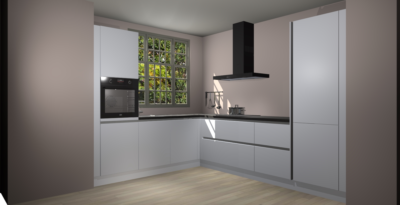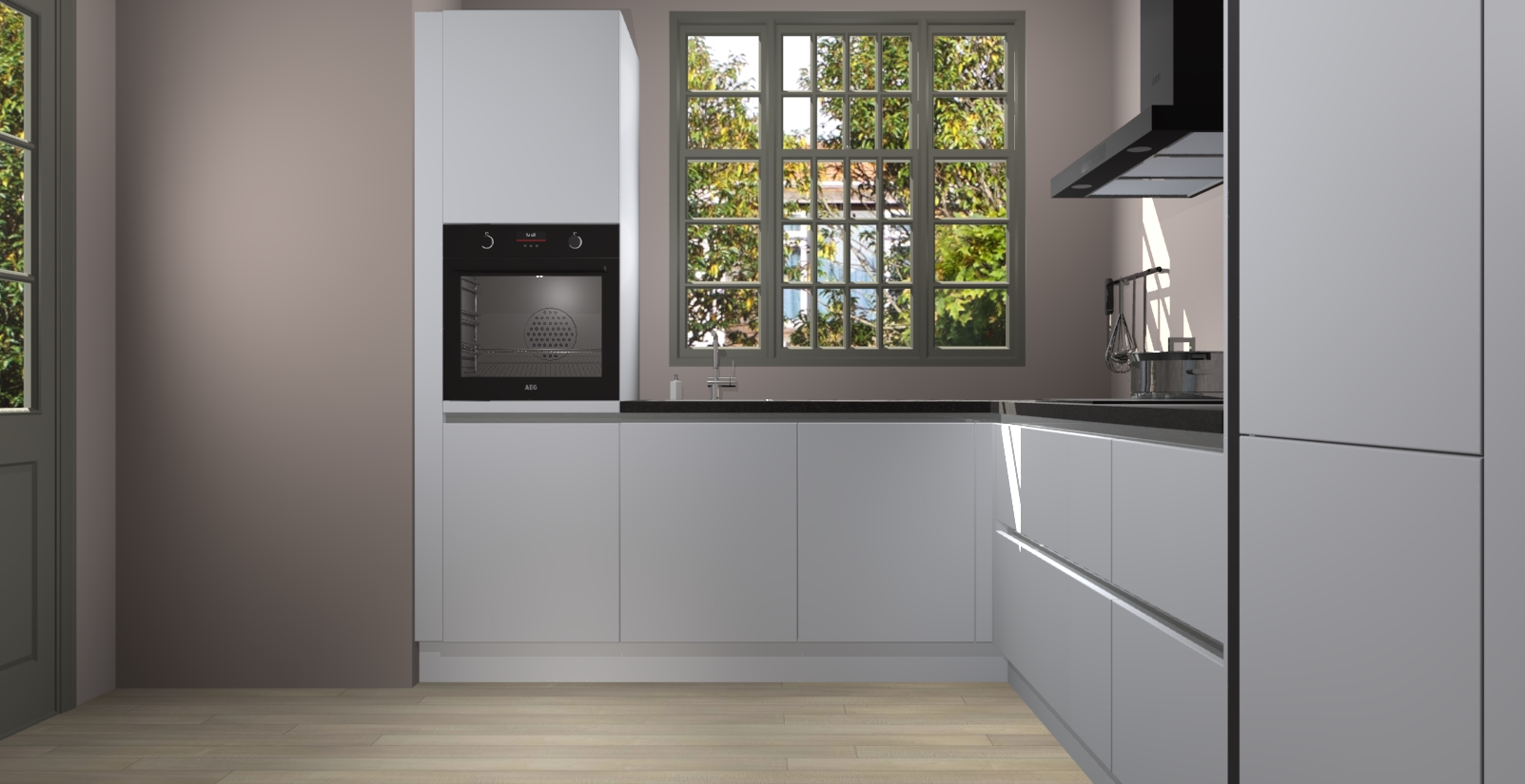 Met een modern, tijdloos design en ruime opslagruimte, zult u zich in no-time thuis voelen in uw nieuwe keuken. Uw leven wordt eenvoudiger met de soft-close deuren die voor het ultieme stille comfort zorgen - geen geluid dat u stoort terwijl u kookt. Ook is de keuken voorzien van 5 ingebouwde apparaten: een oven, inductie kookplaat, afzuigkap, vaatwasser en koelkast. Deze kunnen gemakkelijk na bestelling worden bijgewerkt naar AEG - waardoor uw luxe ervaring compleet is.
