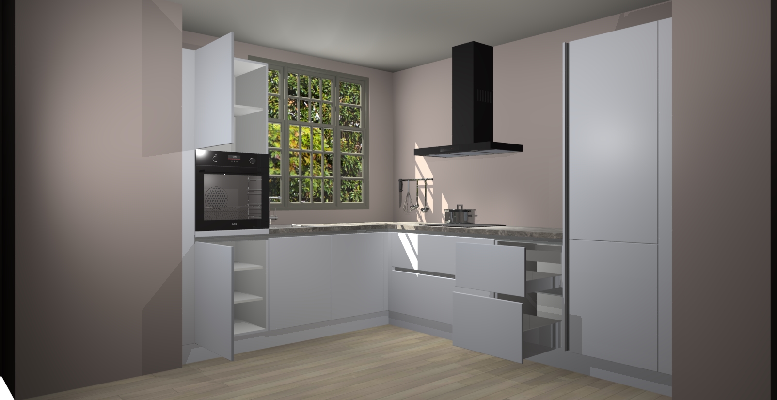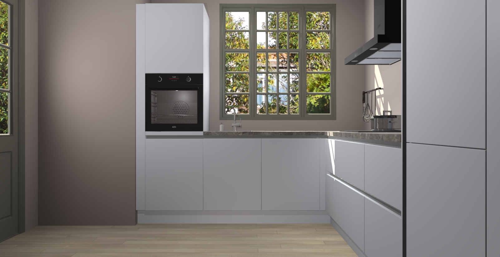 Met een modern, tijdloos design en ruime opslagruimte, zult u zich in no-time thuis voelen in uw nieuwe keuken. Uw leven wordt eenvoudiger met de soft-close deuren die voor het ultieme stille comfort zorgen - geen geluid dat u stoort terwijl u kookt. Ook is de keuken voorzien van 5 ingebouwde apparaten: een oven, inductie kookplaat, afzuigkap, vaatwasser en koelkast. Deze kunnen gemakkelijk na bestelling worden bijgewerkt naar AEG - waardoor uw luxe ervaring compleet is.