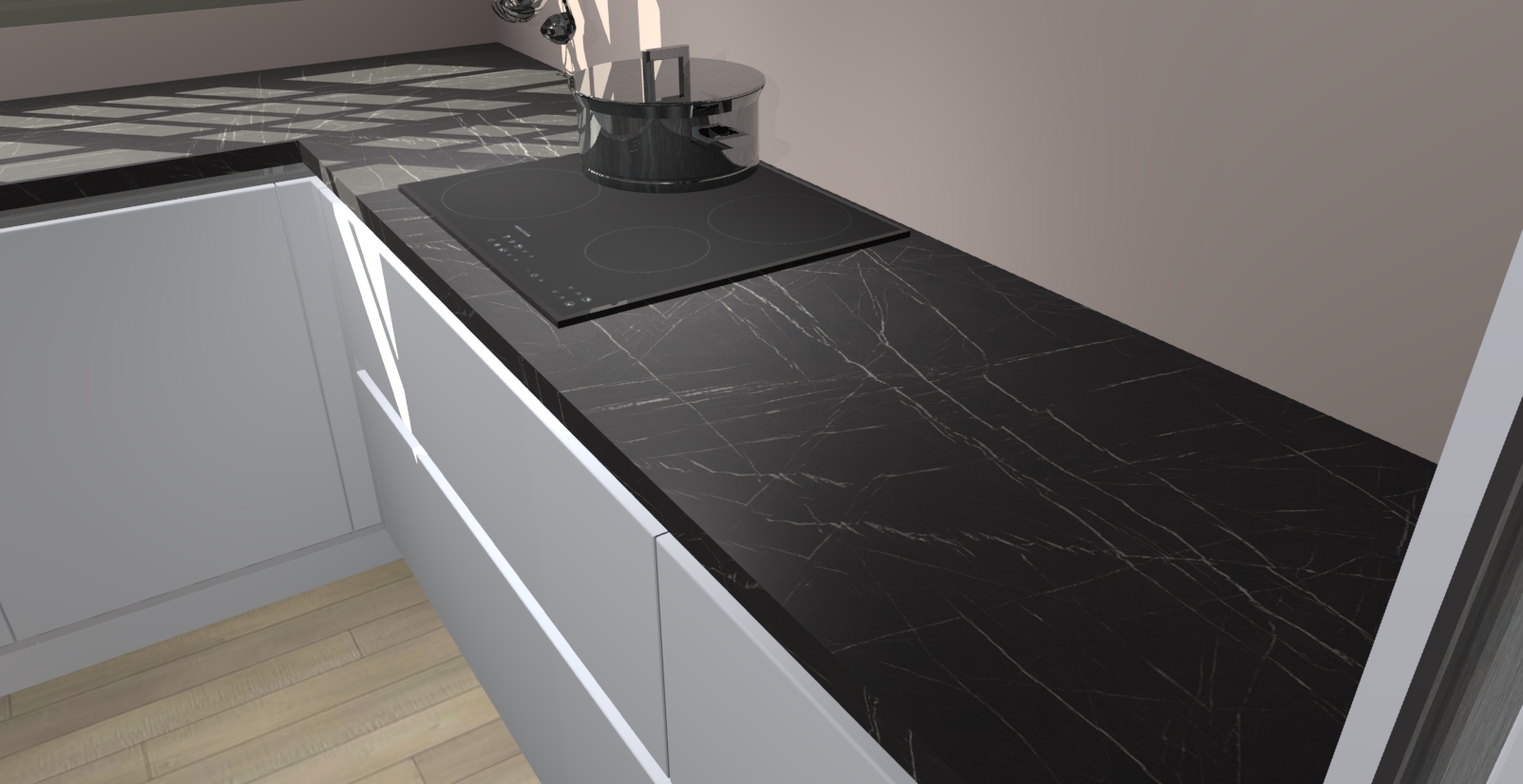 • Bij een hoekwerkblad zijn de hoeken in gevreesd en op maat gemaakt