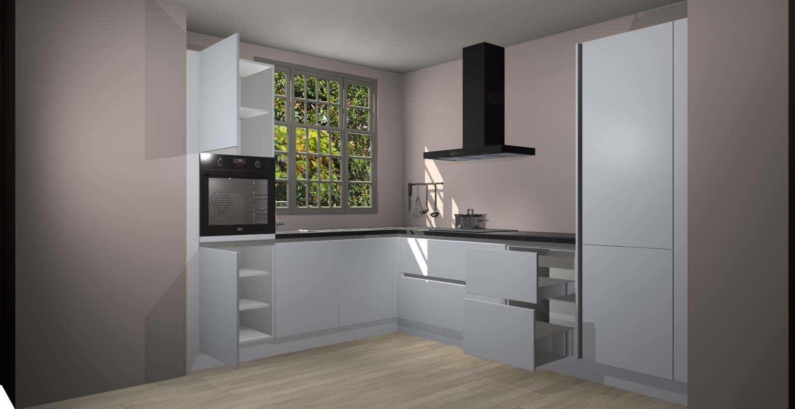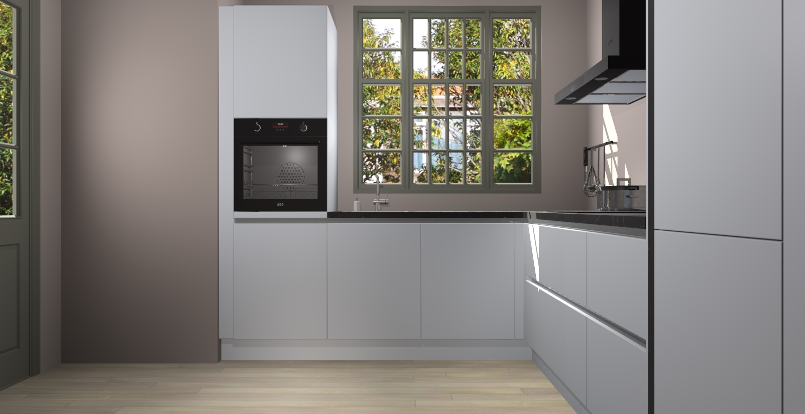 Met een modern, tijdloos design en ruime opslagruimte, zult u zich in no-time thuis voelen in uw nieuwe keuken. Uw leven wordt eenvoudiger met de soft-close deuren die voor het ultieme stille comfort zorgen - geen geluid dat u stoort terwijl u kookt. Ook is de keuken voorzien van 5 ingebouwde apparaten: een oven, inductie kookplaat, afzuigkap, vaatwasser en koelkast. Deze kunnen gemakkelijk na bestelling worden bijgewerkt naar AEG - waardoor uw luxe ervaring compleet is.