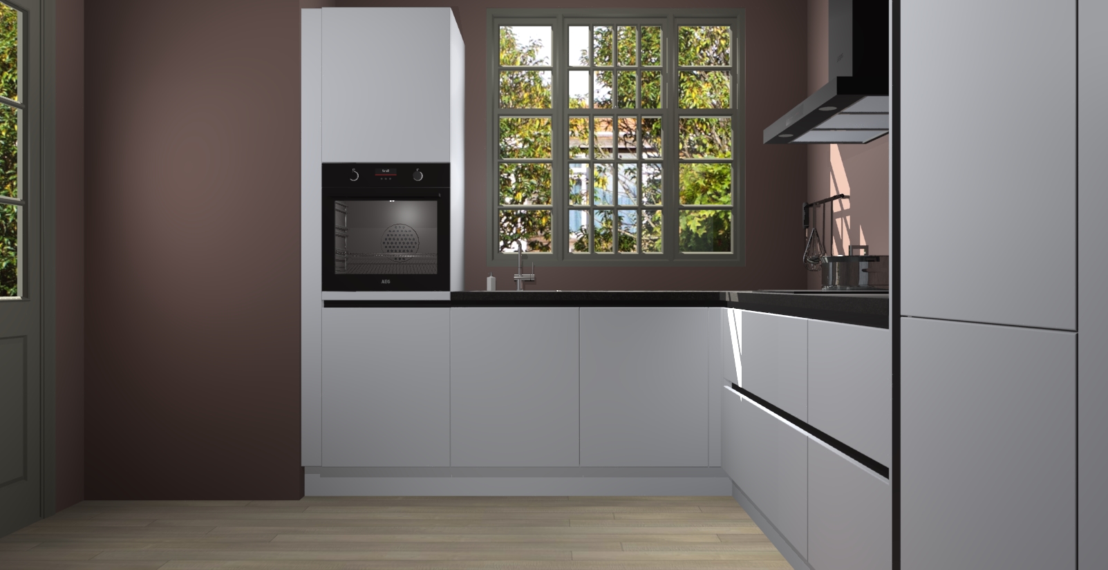 Met een modern, tijdloos design en ruime opslagruimte, zult u zich in no-time thuis voelen in uw nieuwe keuken. Uw leven wordt eenvoudiger met de soft-close deuren die voor het ultieme stille comfort zorgen - geen geluid dat u stoort terwijl u kookt. Ook is de keuken voorzien van 5 ingebouwde apparaten: een oven, inductie kookplaat, afzuigkap, vaatwasser en koelkast. Deze kunnen gemakkelijk na bestelling worden bijgewerkt naar AEG - waardoor uw luxe ervaring compleet is.