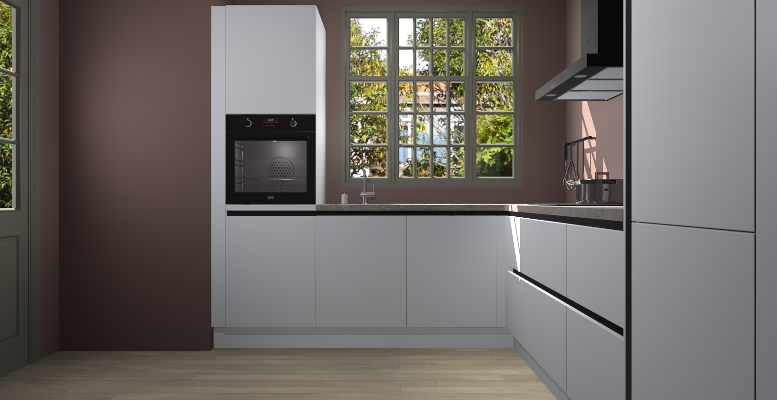 Met een modern, tijdloos design en ruime opslagruimte, zult u zich in no-time thuis voelen in uw nieuwe keuken. Uw leven wordt eenvoudiger met de soft-close deuren die voor het ultieme stille comfort zorgen - geen geluid dat u stoort terwijl u kookt. Ook is de keuken voorzien van 5 ingebouwde apparaten: een oven, inductie kookplaat, afzuigkap, vaatwasser en koelkast. Deze kunnen gemakkelijk na bestelling worden bijgewerkt naar AEG - waardoor uw luxe ervaring compleet is.