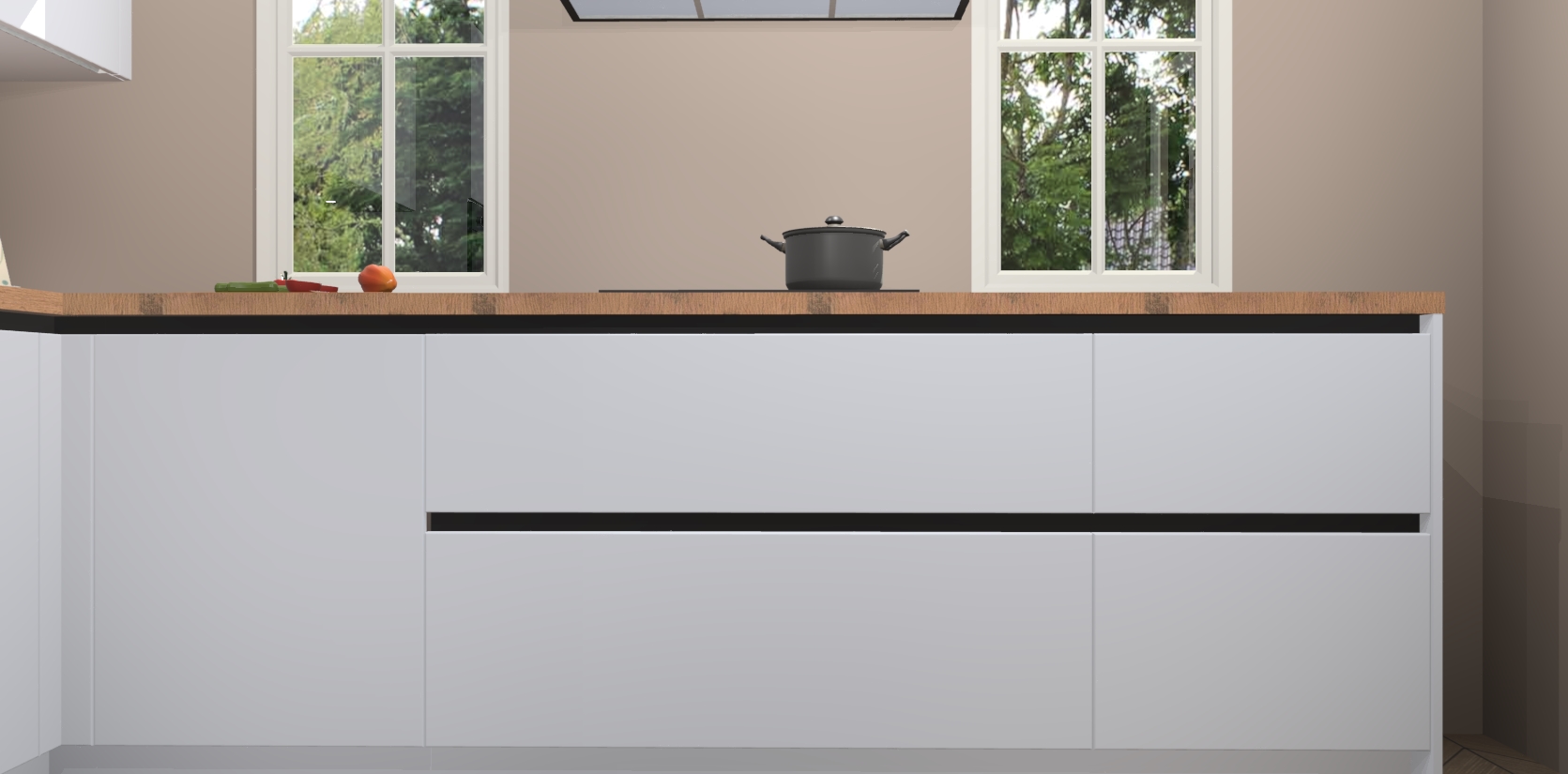 - Bij een hoekwerkblad zijn de hoeken in gevreesd en op maat gemaakt