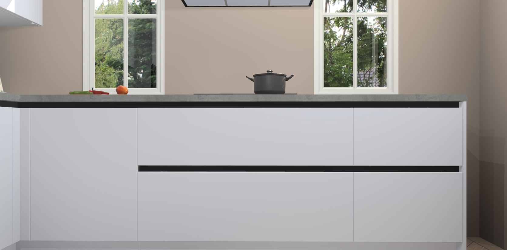 In deze box zijn alle kleuren verzameld van de deuren en werkbladen. Vraag de gratis kleurenbox aan en kijk thuis rustig verder!