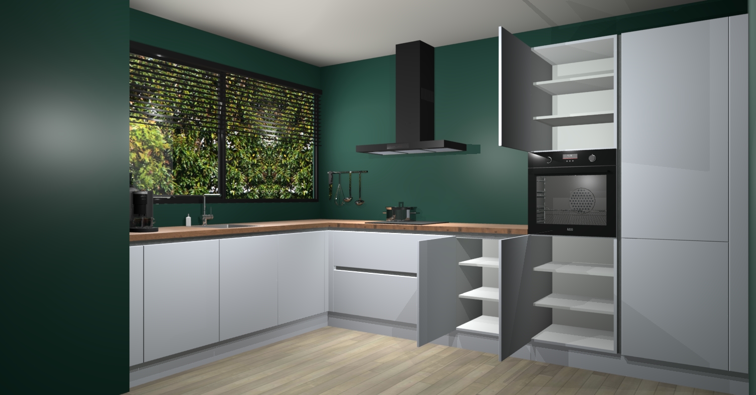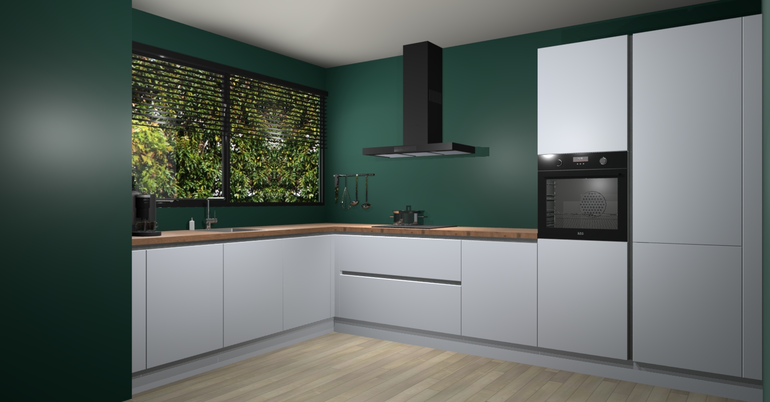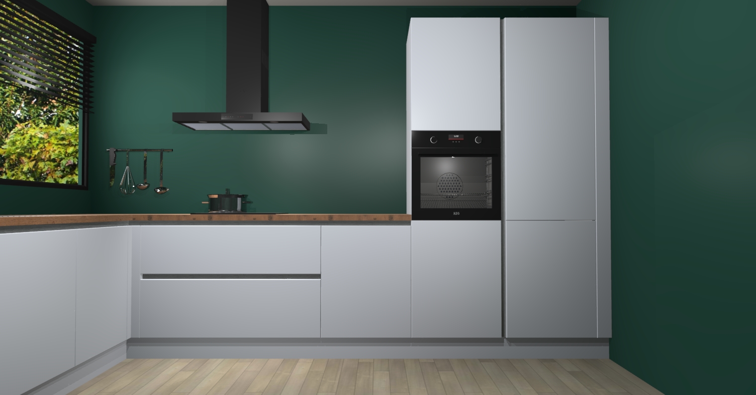 Met een modern, tijdloos design en ruime opslagruimte, zult u zich in no-time thuis voelen in uw nieuwe keuken. Uw leven wordt eenvoudiger met de soft-close deuren die voor het ultieme stille comfort zorgen - geen geluid dat u stoort terwijl u kookt. Ook is de keuken voorzien van 5 ingebouwde apparaten: een oven, inductie kookplaat, afzuigkap, vaatwasser en koelkast. Deze kunnen gemakkelijk na bestelling worden bijgewerkt naar AEG - waardoor uw luxe ervaring compleet is.