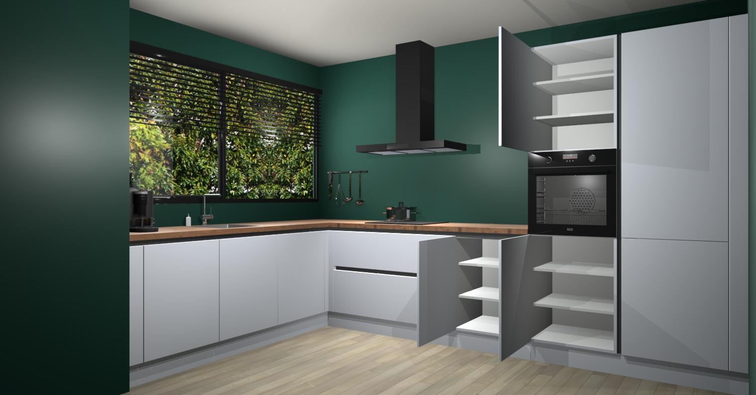 Met een modern, tijdloos design en ruime opslagruimte, zult u zich in no-time thuis voelen in uw nieuwe keuken. Uw leven wordt eenvoudiger met de soft-close deuren die voor het ultieme stille comfort zorgen - geen geluid dat u stoort terwijl u kookt. Ook is de keuken voorzien van 5 ingebouwde apparaten: een oven, inductie kookplaat, afzuigkap, vaatwasser en koelkast. Deze kunnen gemakkelijk na bestelling worden bijgewerkt naar AEG - waardoor uw luxe ervaring compleet is.