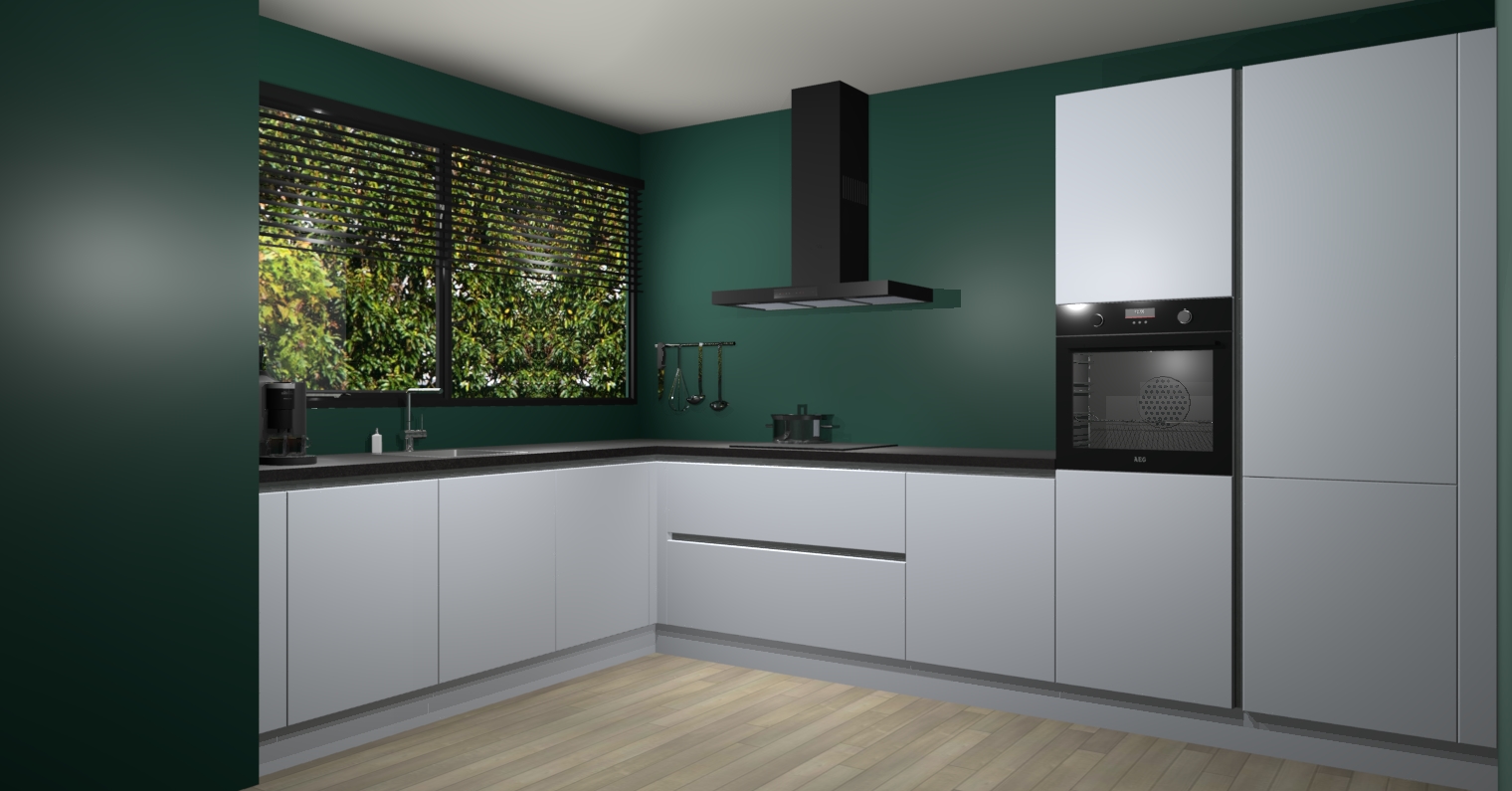 Met een modern, tijdloos design en ruime opslagruimte, zult u zich in no-time thuis voelen in uw nieuwe keuken. Uw leven wordt eenvoudiger met de soft-close deuren die voor het ultieme stille comfort zorgen - geen geluid dat u stoort terwijl u kookt. Ook is de keuken voorzien van 5 ingebouwde apparaten: een oven, inductie kookplaat, afzuigkap, vaatwasser en koelkast. Deze kunnen gemakkelijk na bestelling worden bijgewerkt naar AEG - waardoor uw luxe ervaring compleet is.