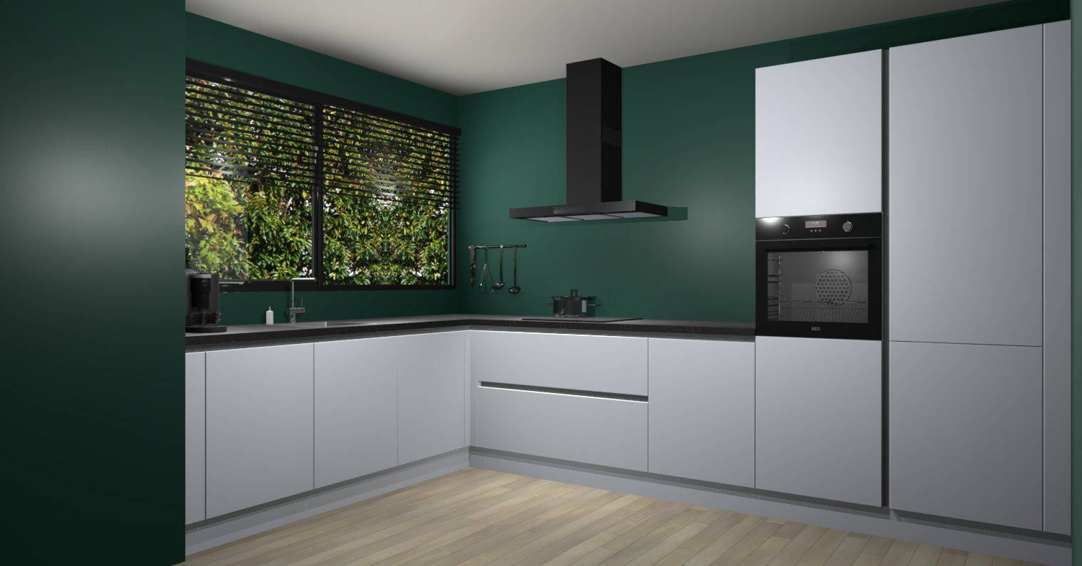 Met een modern, tijdloos design en ruime opslagruimte, zult u zich in no-time thuis voelen in uw nieuwe keuken. Uw leven wordt eenvoudiger met de soft-close deuren die voor het ultieme stille comfort zorgen - geen geluid dat u stoort terwijl u kookt. Ook is de keuken voorzien van 5 ingebouwde apparaten: een oven, inductie kookplaat, afzuigkap, vaatwasser en koelkast. Deze kunnen gemakkelijk na bestelling worden bijgewerkt naar AEG - waardoor uw luxe ervaring compleet is.