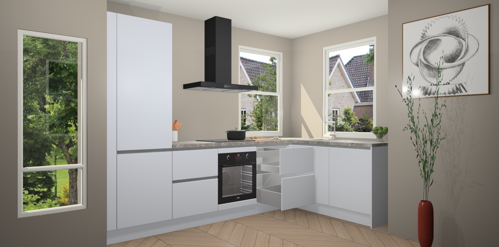 Inclusief plinten, stelpoten en werkblad
