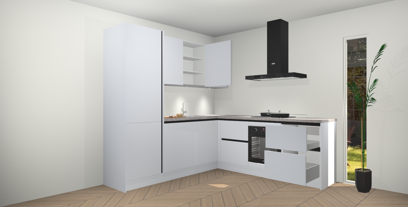 Inclusief plinten, stelpoten en werkblad