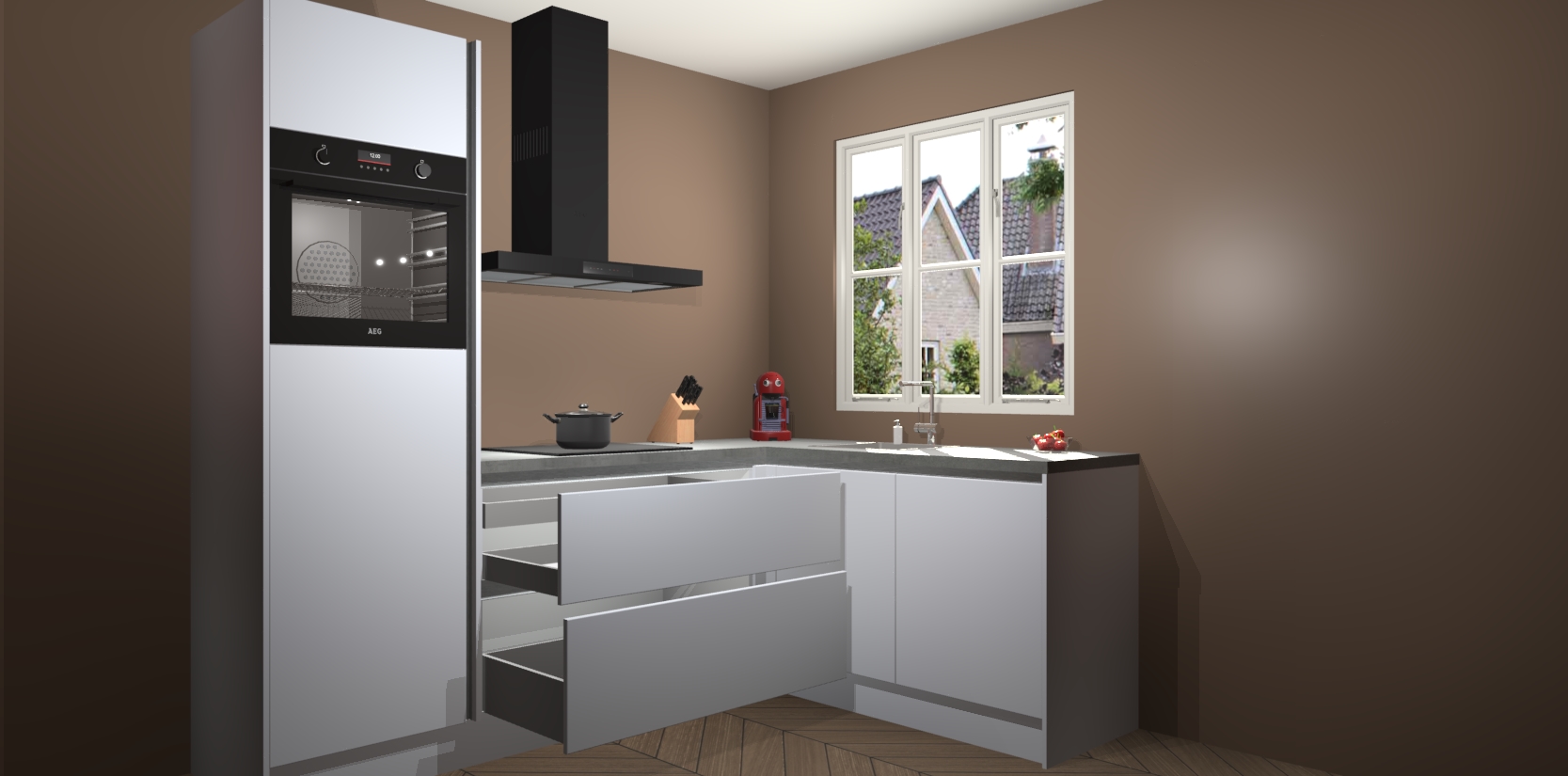 In deze box zijn alle kleuren verzameld van de deuren en werkbladen. Vraag de gratis kleurenbox aan en kijk thuis rustig verder!