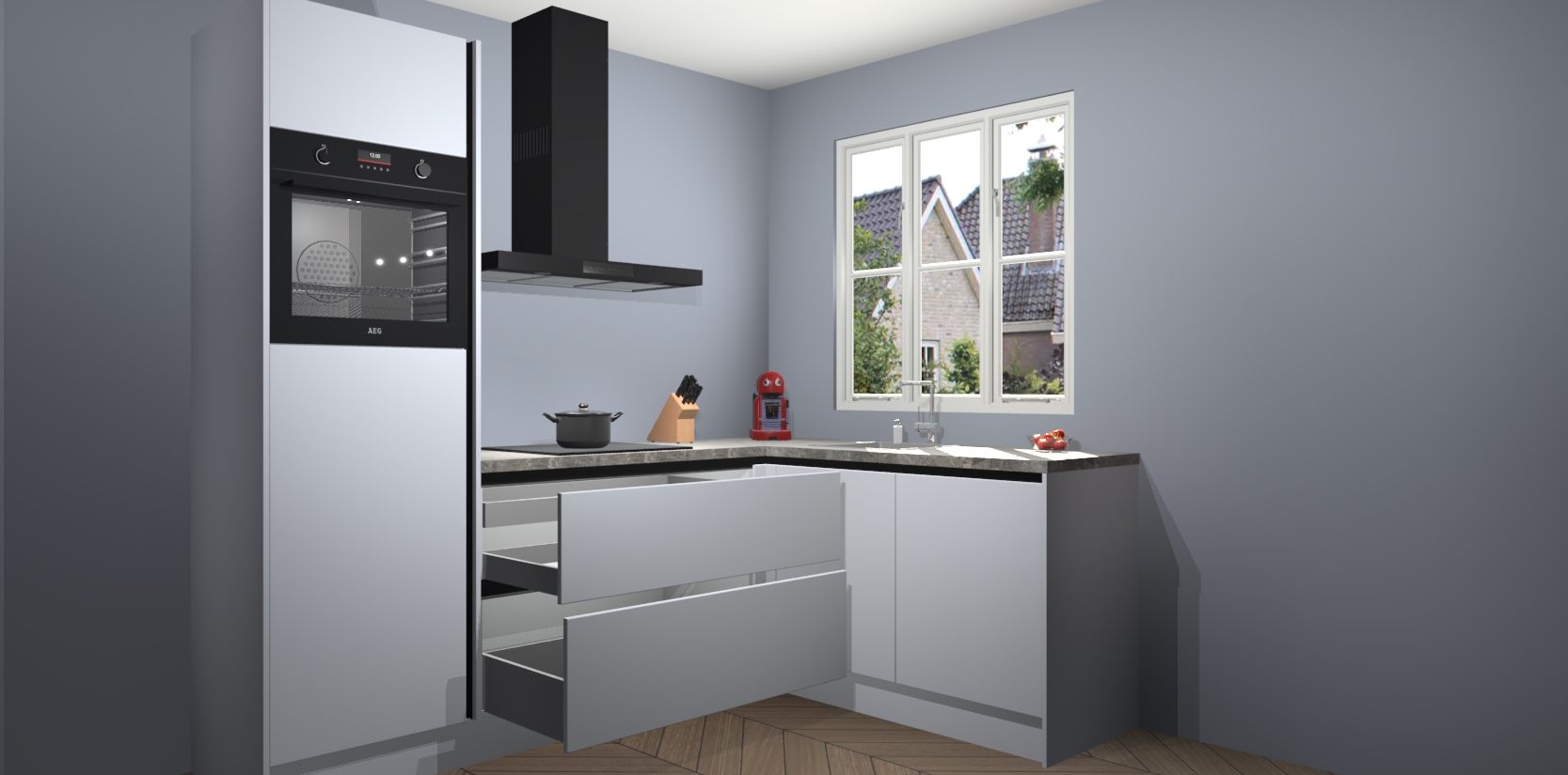 In deze box zijn alle kleuren verzameld van de deuren en werkbladen. Vraag de gratis kleurenbox aan en kijk thuis rustig verder!
