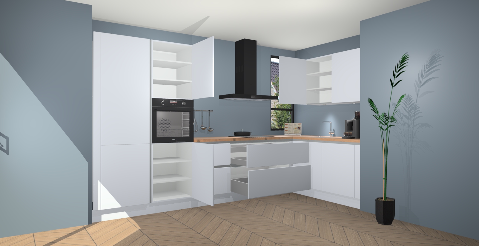 Welkom in uw nieuwe moderne keuken! Laat ons u voorstellen aan de Sneeuwwitte greeploze keuken Vlaanderen . Deze prachtige hoekkeuken straalt exclusiviteit en luxe uit als geen ander. Het strakke design, de tijdloze kleuren en het greeploze model maken van deze keuken een moderne klassieker. En met voldoende opbergruimte heeft deze keuken echt voor ieder wat wils.