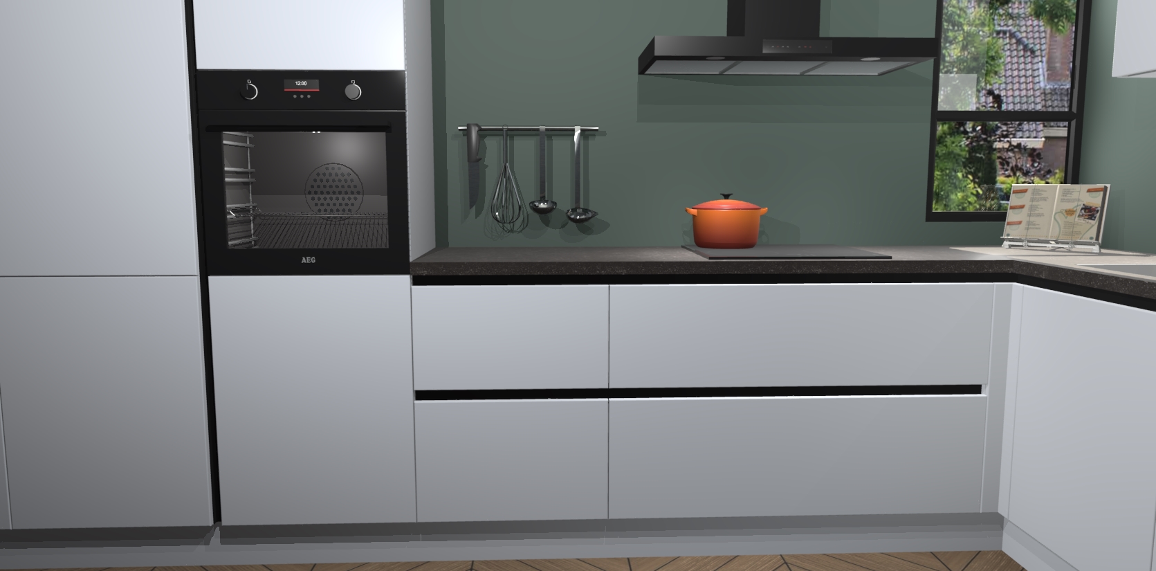 En dat alles voor een vaste lage prijs - u hoeft dus niet in te leveren op kwaliteit of stijl om te krijgen wat u nodig heeft en wilt van uw nieuwe keuken. En met een supersnelle levering van 7 weken kan u in een mum van tijd beginnen koken! En het beste van alles: de kasten worden voorgemonteerd geleverd, dus de installatie is eenvoudig. Bovendien wordt elk onderdeel geleverd met Duitse kwaliteitsgarantie, wat betekent dat deze keuken gemaakt is om jarenlang mee te gaan! En er is nog meer: het pakket bevat 5 inbouwapparaten: een oven, inductiekookplaat, afzuigkap, vaatwasser en koelkast die u na bestelling kunt upgraden naar AEG-modellen. Ook inbegrepen zijn softclose deuren die het gebruik voor zowel kinderen als volwassenen gemakkelijk en veilig maken.