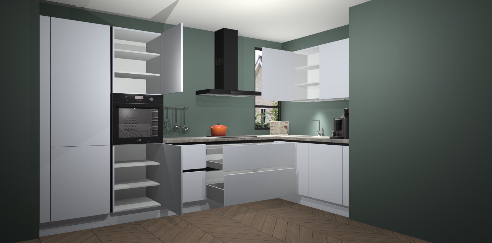 En dat alles voor een vaste lage prijs - u hoeft dus niet in te leveren op kwaliteit of stijl om te krijgen wat u nodig heeft en wilt van uw nieuwe keuken. En met een supersnelle levering van 7 weken kan u in een mum van tijd beginnen koken! En het beste van alles: de kasten worden voorgemonteerd geleverd, dus de installatie is eenvoudig. Bovendien wordt elk onderdeel geleverd met Duitse kwaliteitsgarantie, wat betekent dat deze keuken gemaakt is om jarenlang mee te gaan!  En er is nog meer: het pakket bevat 5 inbouwapparaten: een oven, inductiekookplaat, afzuigkap, vaatwasser en koelkast die u na bestelling kunt upgraden naar AEG-modellen. Ook inbegrepen zijn softclose deuren die het gebruik voor zowel kinderen als volwassenen gemakkelijk en veilig maken.