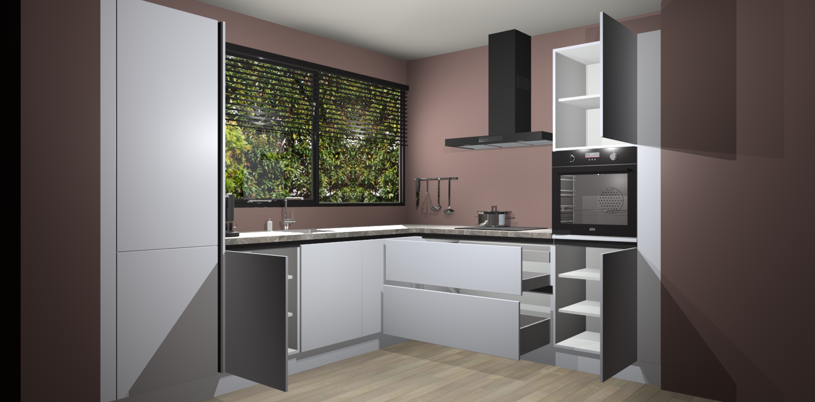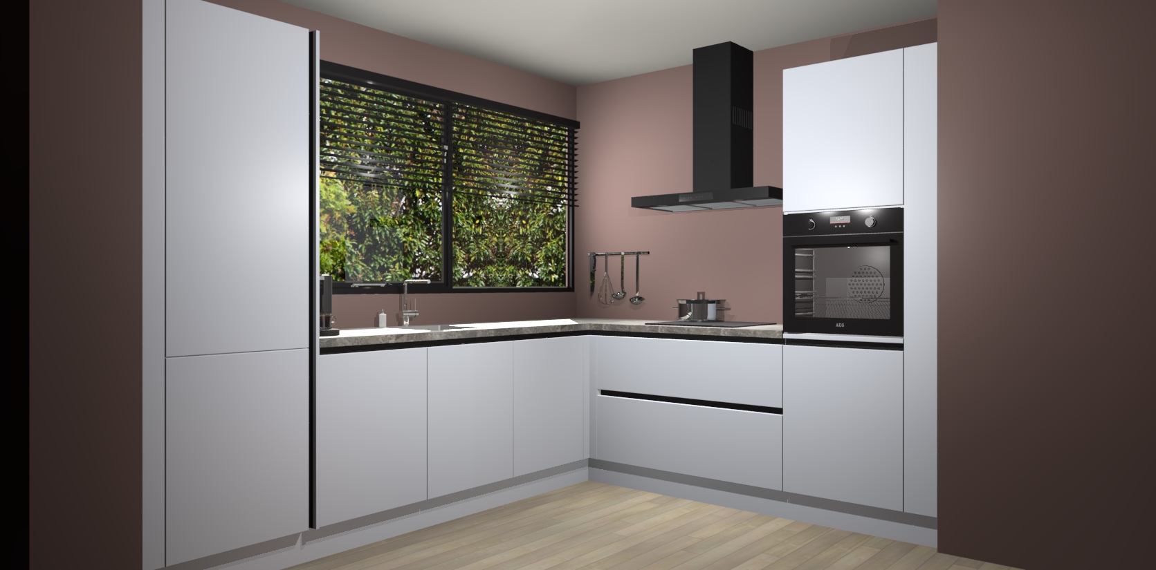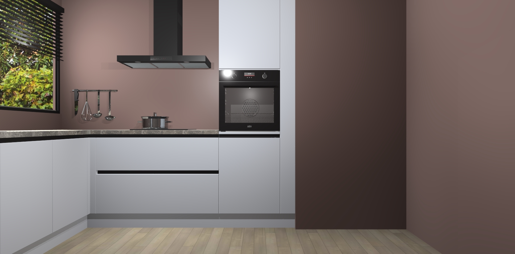 Met een modern, tijdloos design en ruime opslagruimte, zult u zich in no-time thuis voelen in uw nieuwe keuken. Uw leven wordt eenvoudiger met de soft-close deuren die voor het ultieme stille comfort zorgen - geen geluid dat u stoort terwijl u kookt. Ook is de keuken voorzien van 5 ingebouwde apparaten: een oven, inductie kookplaat, afzuigkap, vaatwasser en koelkast. Deze kunnen gemakkelijk na bestelling worden bijgewerkt naar AEG - waardoor uw luxe ervaring compleet is.