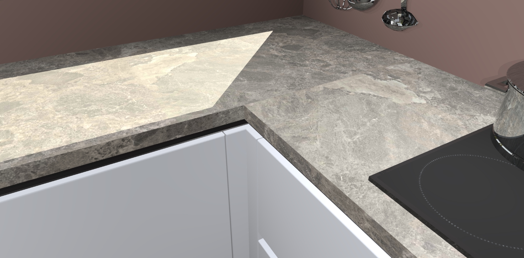 - Bij een hoekwerkblad zijn de hoeken in gevreesd en op maat gemaakt