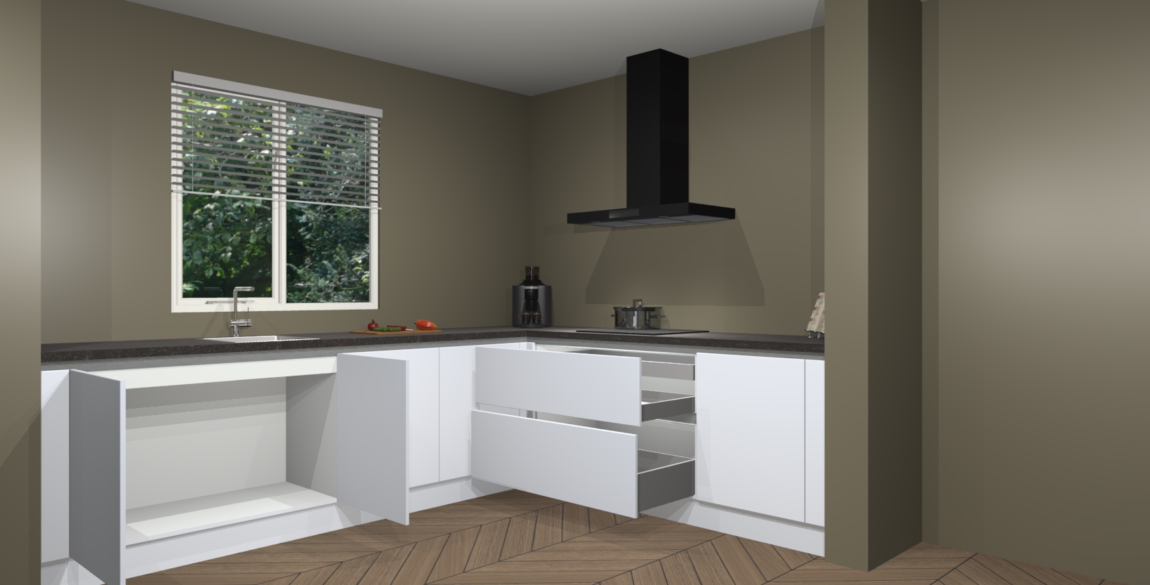 Hoekonderkast met le-mans systeem