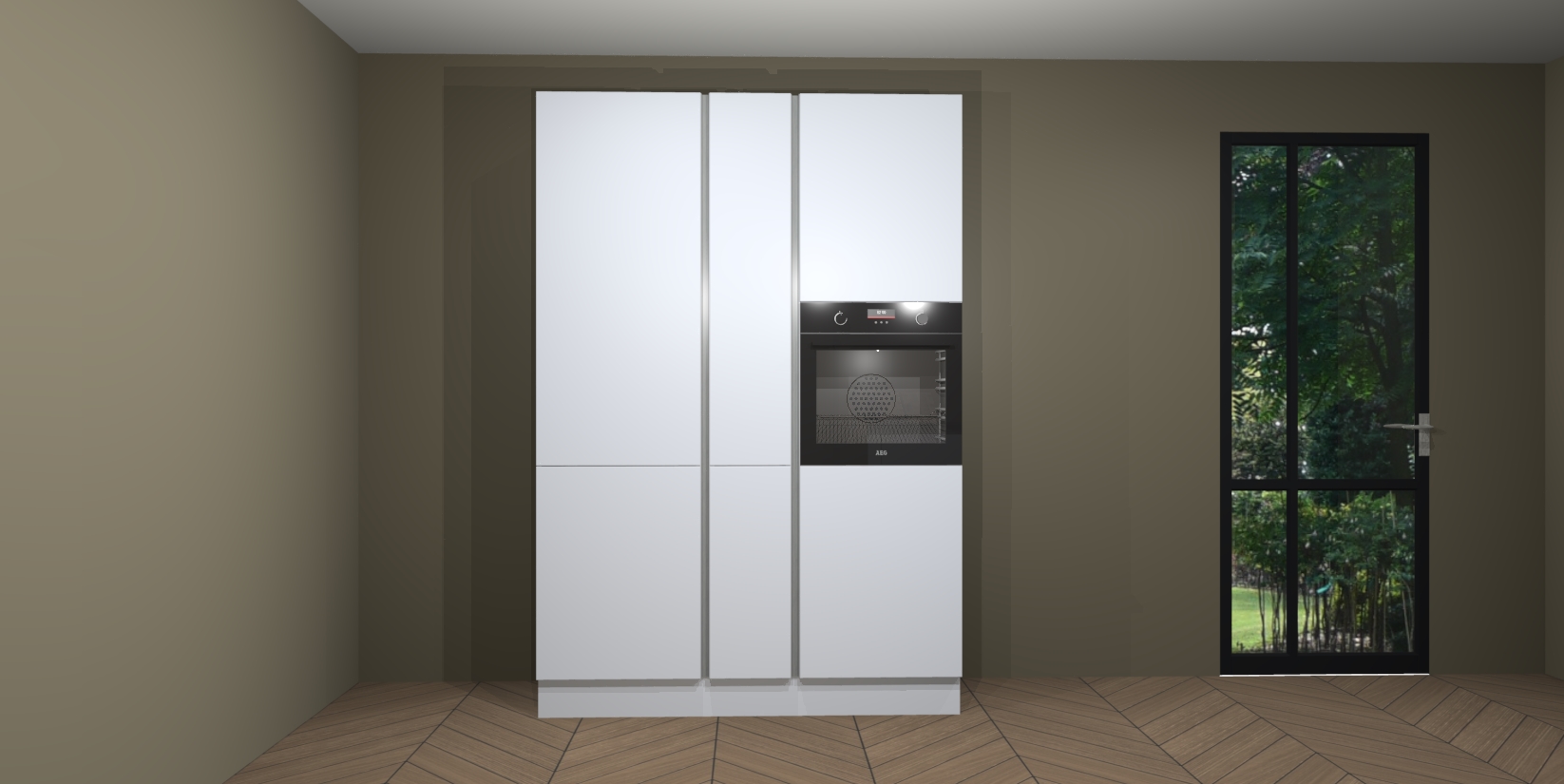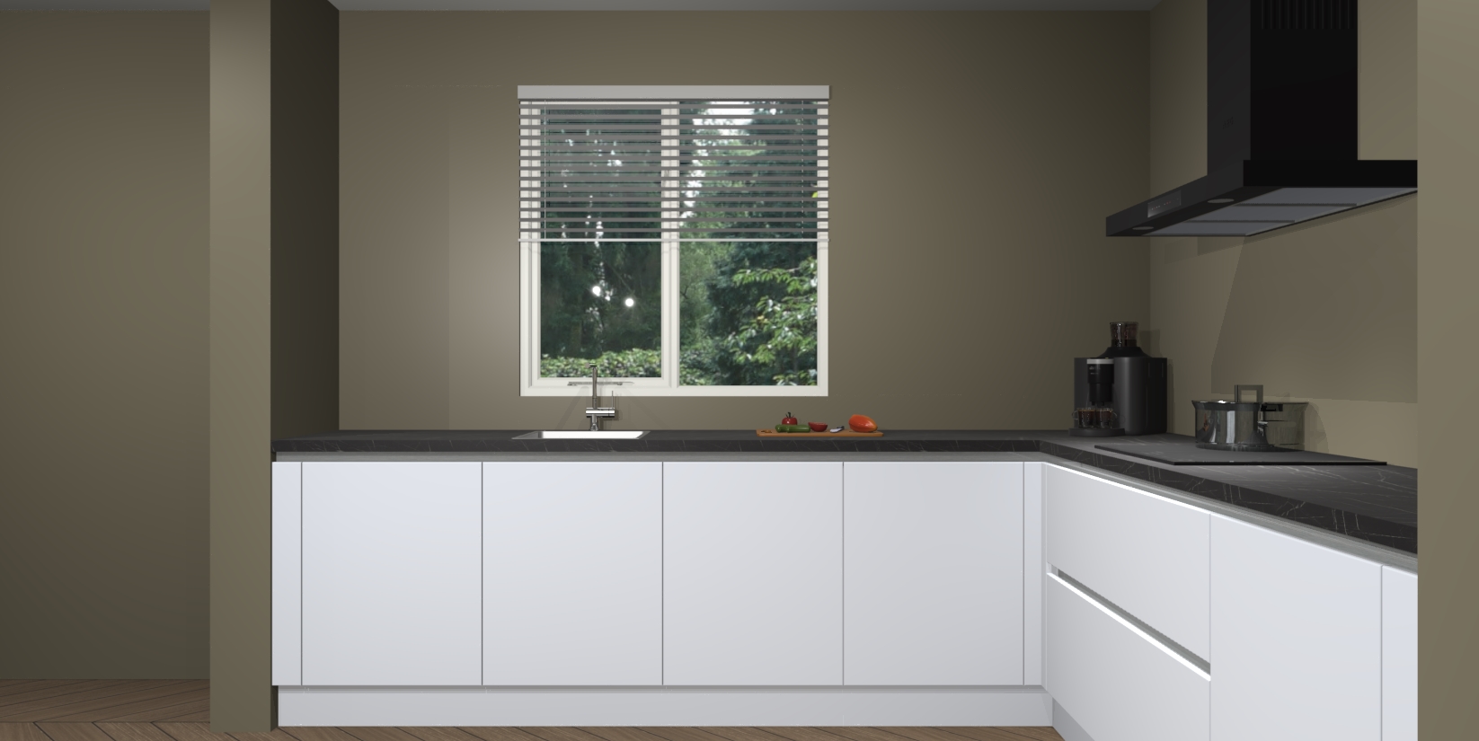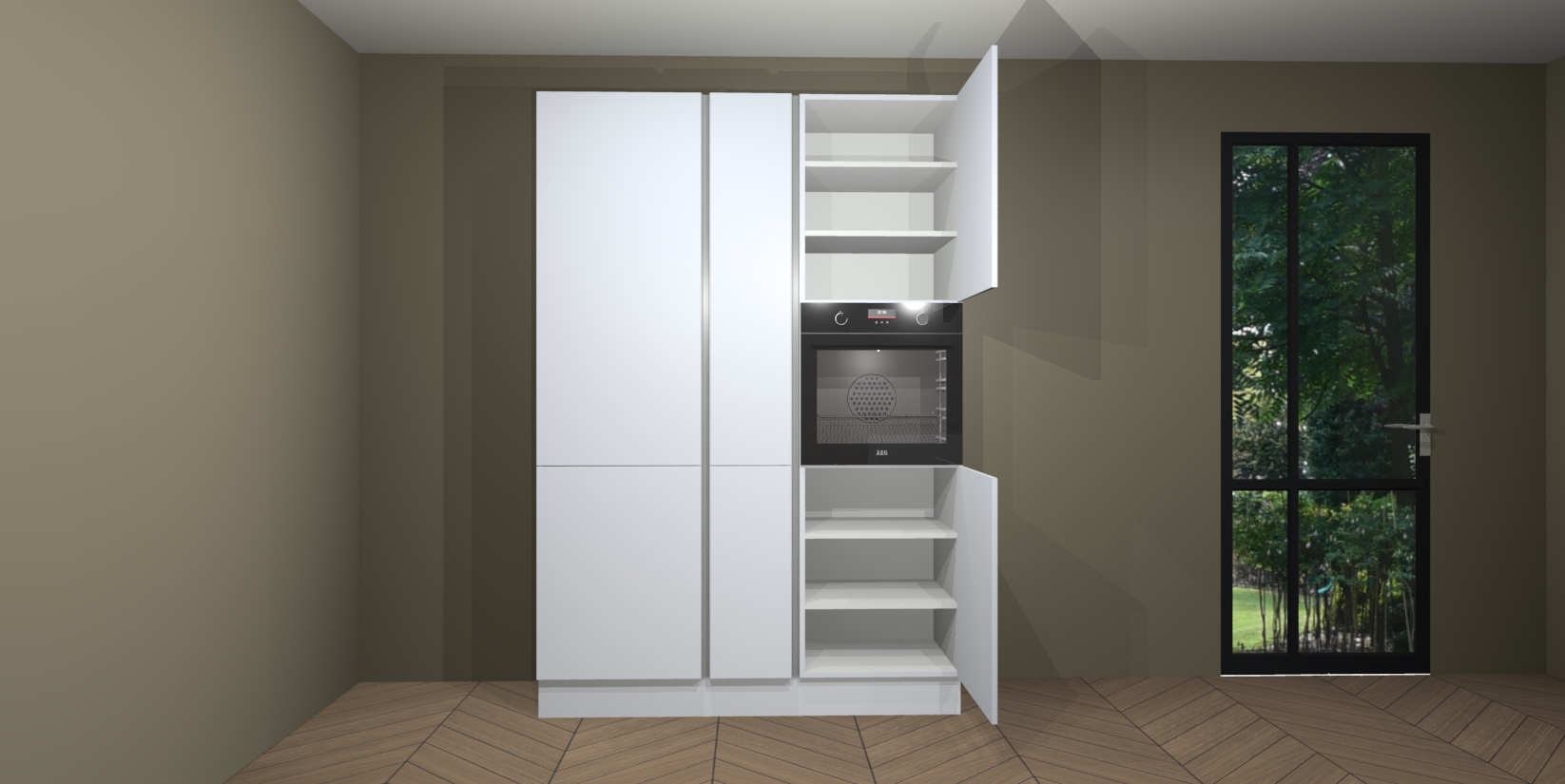 Met een modern, tijdloos design en ruime opslagruimte, zult u zich in no-time thuis voelen in uw nieuwe keuken. Uw leven wordt eenvoudiger met de soft-close deuren die voor het ultieme stille comfort zorgen - geen geluid dat u stoort terwijl u kookt. Ook is de keuken voorzien van 5 ingebouwde apparaten: een oven, inductie kookplaat, afzuigkap, vaatwasser en koelkast. Deze kunnen gemakkelijk na bestelling worden bijgewerkt naar AEG - waardoor uw luxe ervaring compleet is.