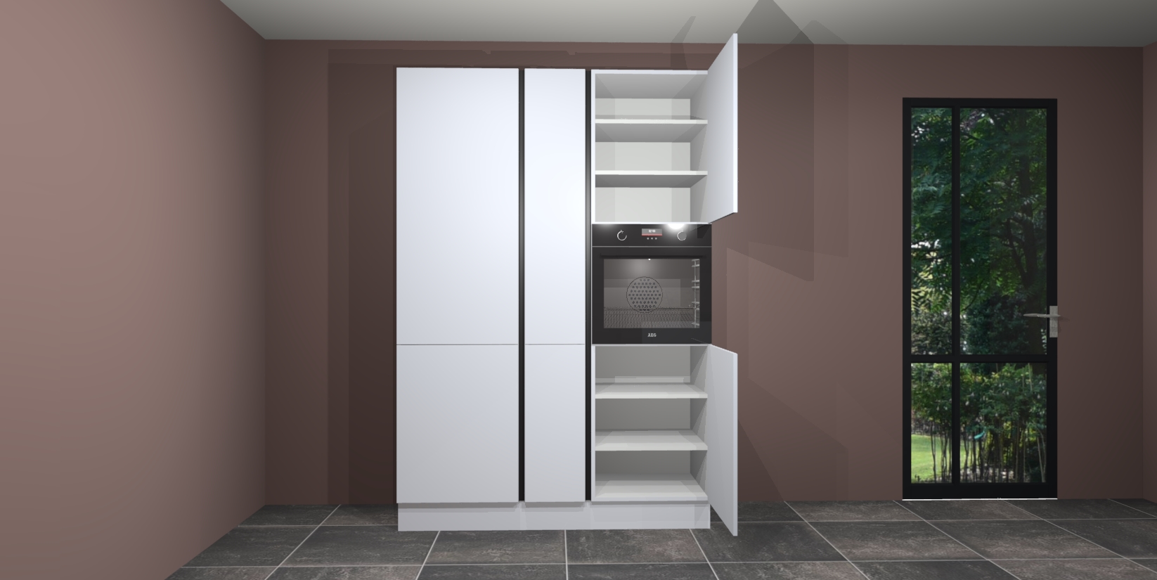 Met een modern, tijdloos design en ruime opslagruimte, zult u zich in no-time thuis voelen in uw nieuwe keuken. Uw leven wordt eenvoudiger met de soft-close deuren die voor het ultieme stille comfort zorgen - geen geluid dat u stoort terwijl u kookt. Ook is de keuken voorzien van 5 ingebouwde apparaten: een oven, inductie kookplaat, afzuigkap, vaatwasser en koelkast. Deze kunnen gemakkelijk na bestelling worden bijgewerkt naar AEG - waardoor uw luxe ervaring compleet is.