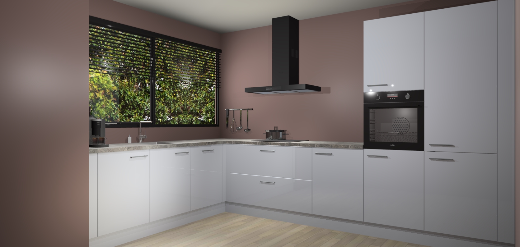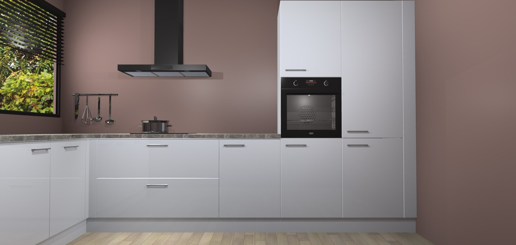 Met een modern, tijdloos design en ruime opslagruimte, zult u zich in no-time thuis voelen in uw nieuwe keuken. Uw leven wordt eenvoudiger met de soft-close deuren die voor het ultieme stille comfort zorgen - geen geluid dat u stoort terwijl u kookt. Ook is de keuken voorzien van 5 ingebouwde apparaten: een oven, inductie kookplaat, afzuigkap, vaatwasser en koelkast. Deze kunnen gemakkelijk na bestelling worden bijgewerkt naar AEG - waardoor uw luxe ervaring compleet is.