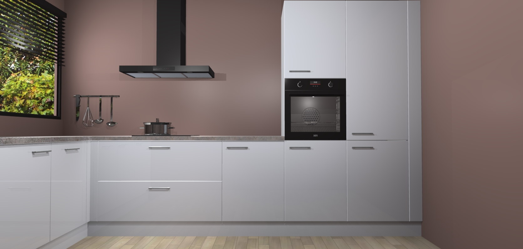 Met een modern, tijdloos design en ruime opslagruimte, zult u zich in no-time thuis voelen in uw nieuwe keuken. Uw leven wordt eenvoudiger met de soft-close deuren die voor het ultieme stille comfort zorgen - geen geluid dat u stoort terwijl u kookt. Ook is de keuken voorzien van 5 ingebouwde apparaten: een oven, inductie kookplaat, afzuigkap, vaatwasser en koelkast. Deze kunnen gemakkelijk na bestelling worden bijgewerkt naar AEG - waardoor uw luxe ervaring compleet is.