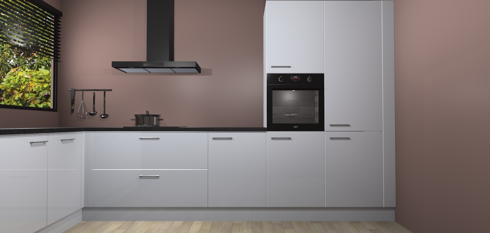 Met een modern, tijdloos design en ruime opslagruimte, zult u zich in no-time thuis voelen in uw nieuwe keuken. Uw leven wordt eenvoudiger met de soft-close deuren die voor het ultieme stille comfort zorgen - geen geluid dat u stoort terwijl u kookt. Ook is de keuken voorzien van 5 ingebouwde apparaten: een oven, inductie kookplaat, afzuigkap, vaatwasser en koelkast. Deze kunnen gemakkelijk na bestelling worden bijgewerkt naar AEG - waardoor uw luxe ervaring compleet is.