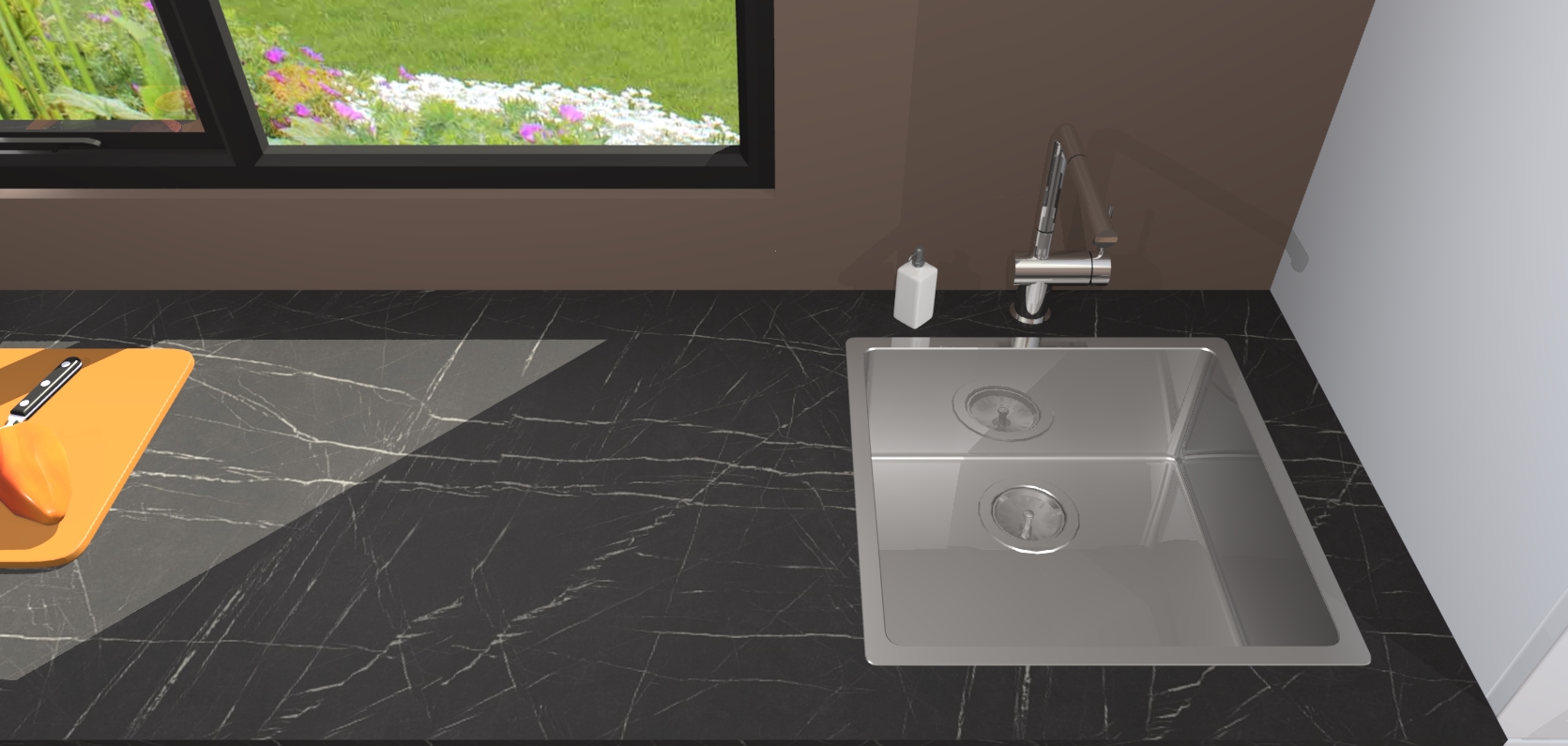 - De spoelbak is nog niet in gevreesd. Dit dient tijdens het werk gedaan te worden