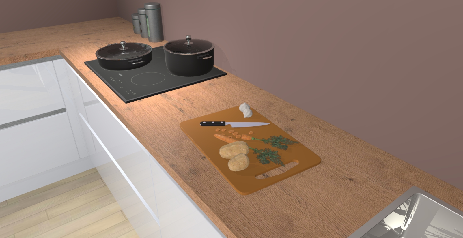Inclusief plinten, stelpoten en werkblad