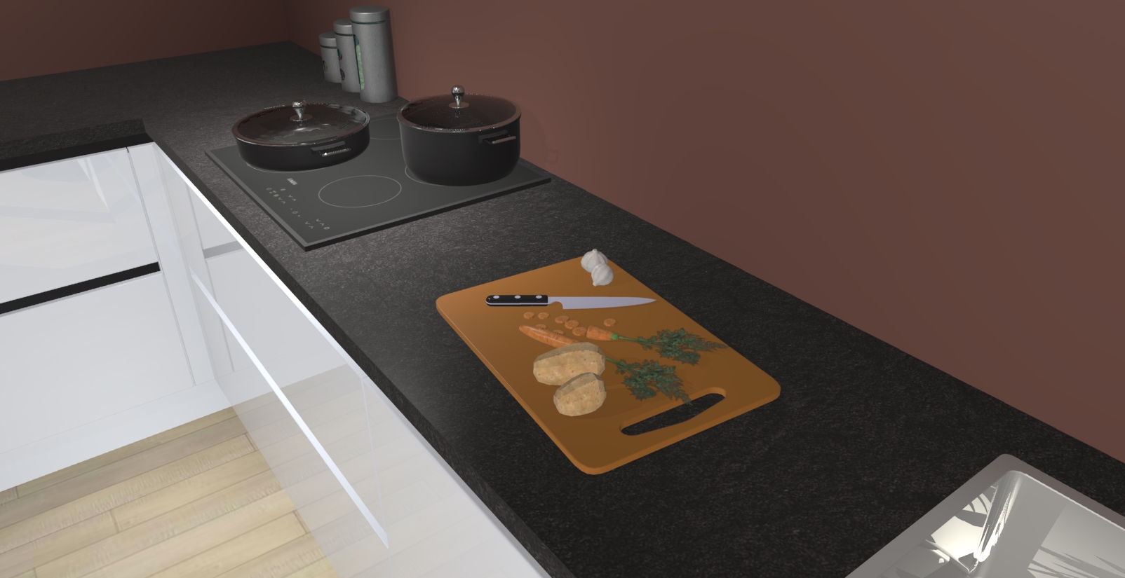 Inclusief plinten, stelpoten en werkblad