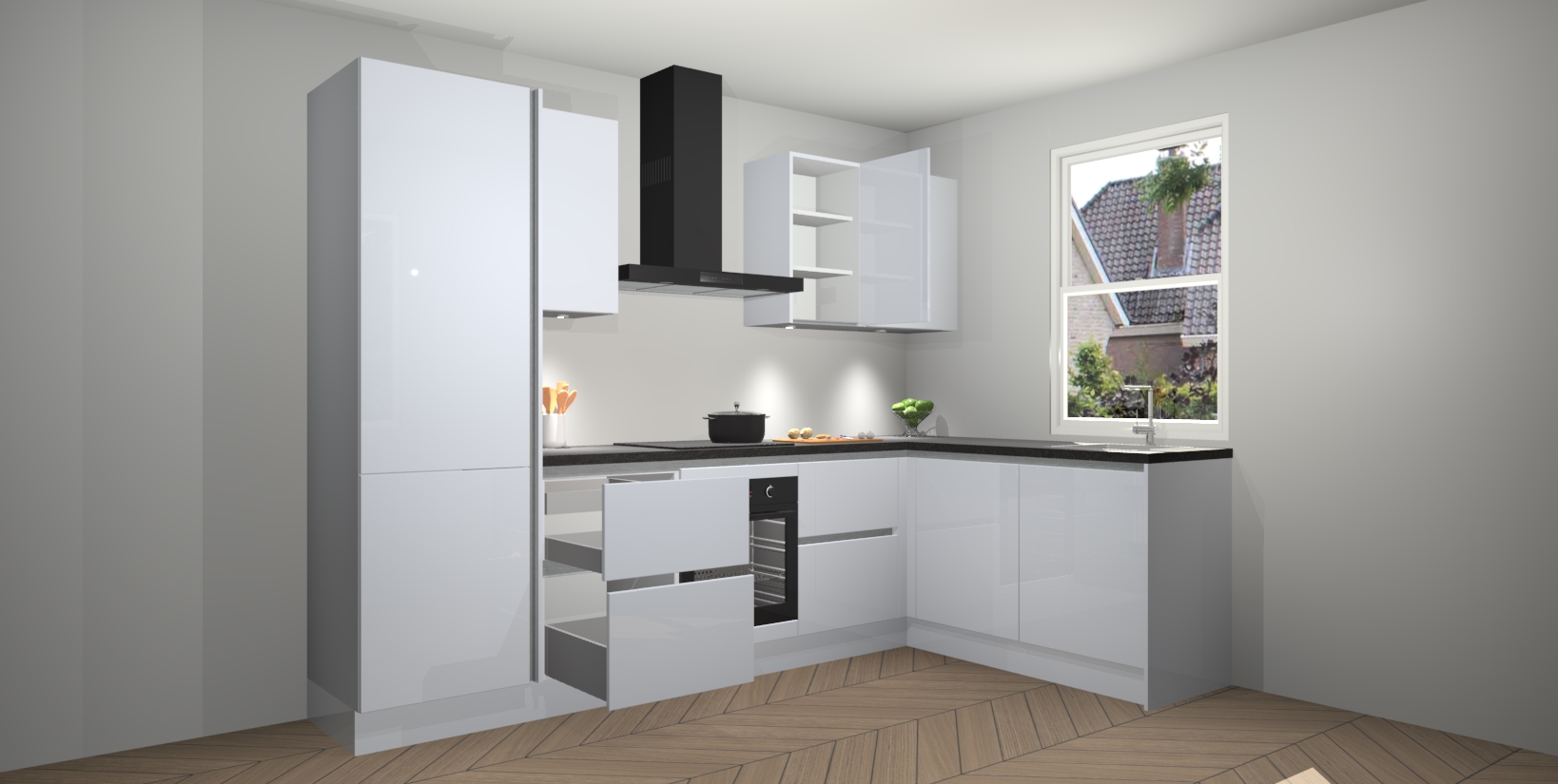 Inclusief plinten, stelpoten en werkblad
