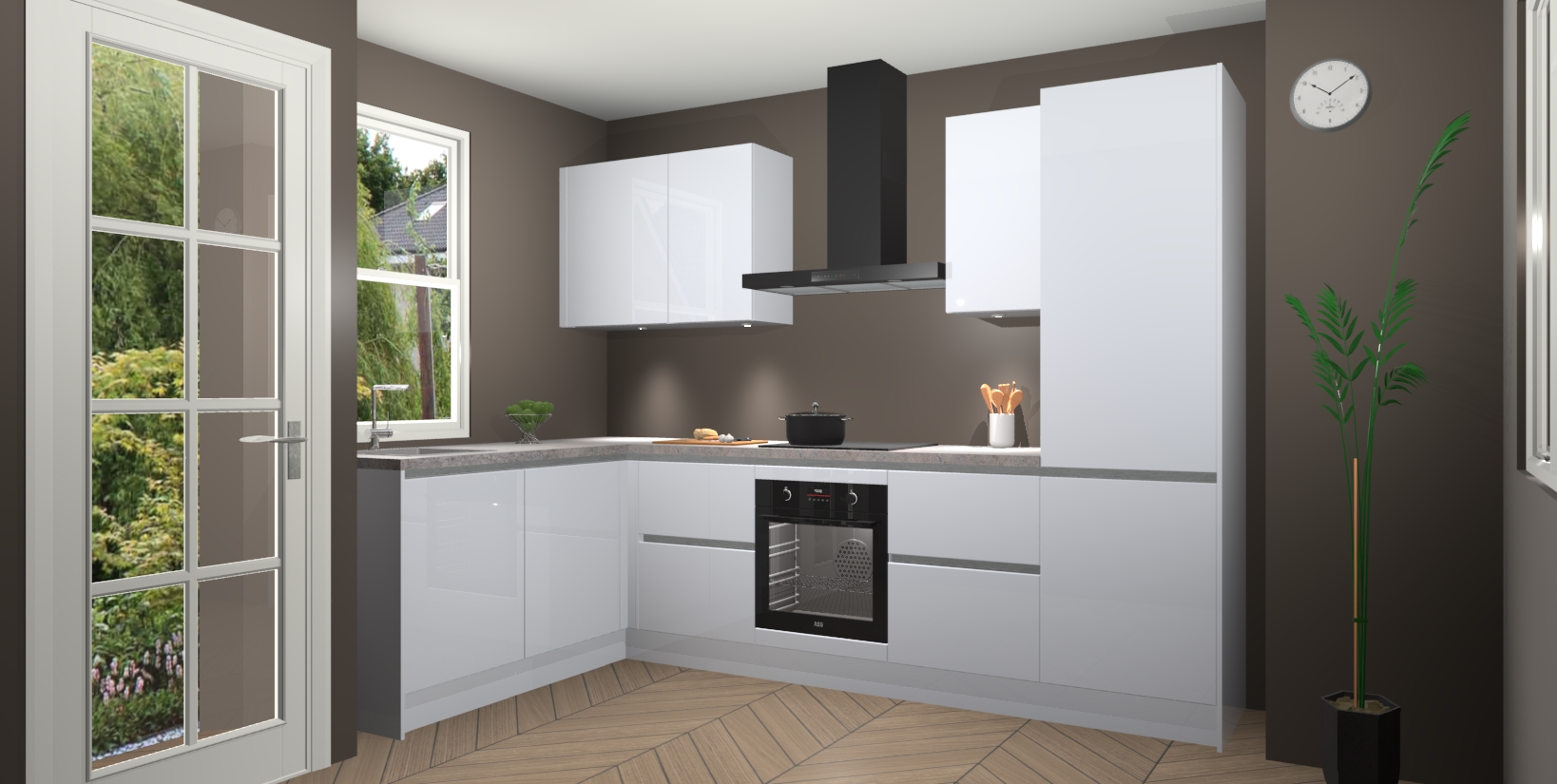 U hoeft zich ook geen zorgen te maken over een gebrek aan opbergruimte, want deze keuken heeft voldoende opbergmogelijkheden zowel boven als onder het aanrecht. Om het leven nog makkelijker te maken, wordt deze moderne hoekkeuken geleverd met 5 ingebouwde apparaten, waaronder een oven, inductiekookplaat, afzuigkap, vaatwasser en koelkast, zodat u in een mum van tijd klaar bent voor actie!