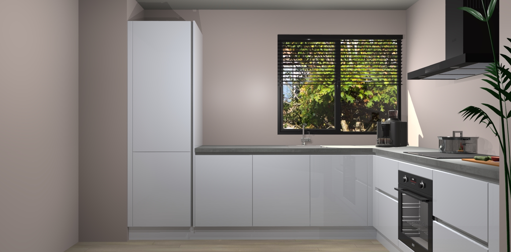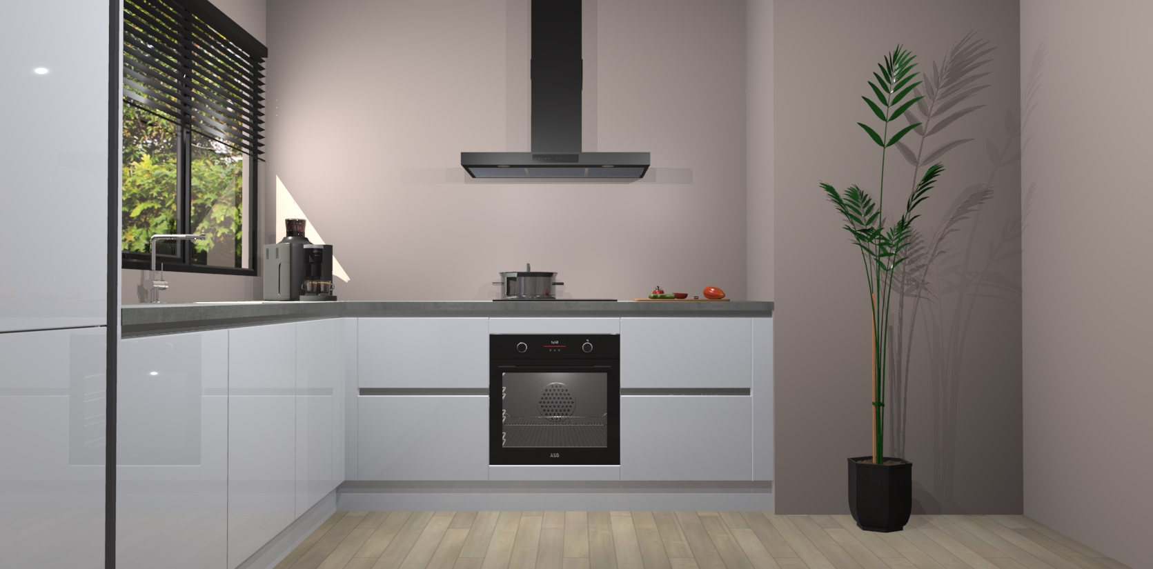 Met een modern, tijdloos design en ruime opslagruimte, zult u zich in no-time thuis voelen in uw nieuwe keuken. Uw leven wordt eenvoudiger met de soft-close deuren die voor het ultieme stille comfort zorgen - geen geluid dat u stoort terwijl u kookt. Ook is de keuken voorzien van 5 ingebouwde apparaten: een oven, inductie kookplaat, afzuigkap, vaatwasser en koelkast. Deze kunnen gemakkelijk na bestelling worden bijgewerkt naar AEG - waardoor uw luxe ervaring compleet is.
