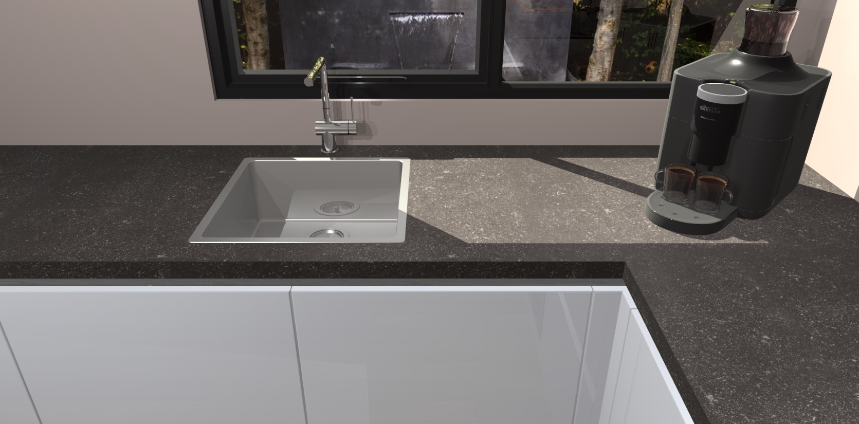 - Bij een hoekwerkblad zijn de hoeken in gevreesd en op maat gemaakt