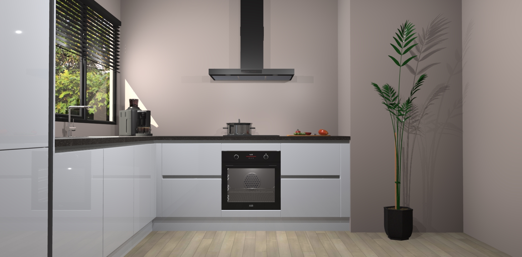 Met een modern, tijdloos design en ruime opslagruimte, zult u zich in no-time thuis voelen in uw nieuwe keuken. Uw leven wordt eenvoudiger met de soft-close deuren die voor het ultieme stille comfort zorgen - geen geluid dat u stoort terwijl u kookt. Ook is de keuken voorzien van 5 ingebouwde apparaten: een oven, inductie kookplaat, afzuigkap, vaatwasser en koelkast. Deze kunnen gemakkelijk na bestelling worden bijgewerkt naar AEG - waardoor uw luxe ervaring compleet is.