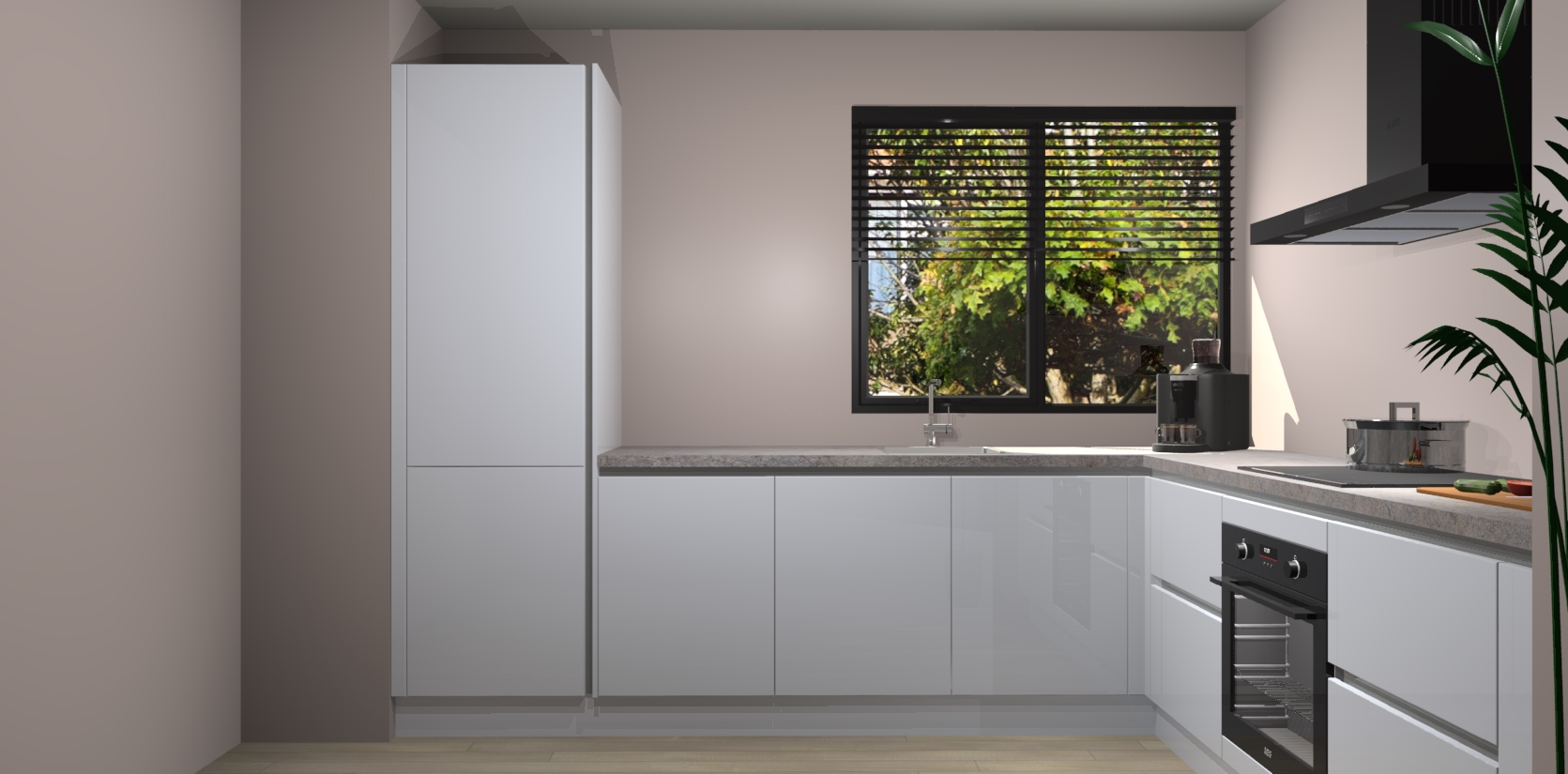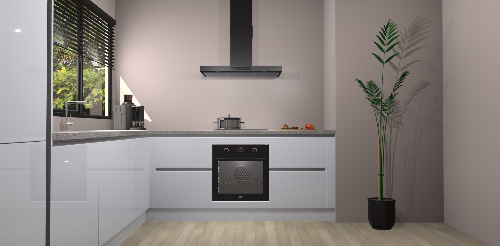Met een modern, tijdloos design en ruime opslagruimte, zult u zich in no-time thuis voelen in uw nieuwe keuken. Uw leven wordt eenvoudiger met de soft-close deuren die voor het ultieme stille comfort zorgen - geen geluid dat u stoort terwijl u kookt. Ook is de keuken voorzien van 5 ingebouwde apparaten: een oven, inductie kookplaat, afzuigkap, vaatwasser en koelkast. Deze kunnen gemakkelijk na bestelling worden bijgewerkt naar AEG - waardoor uw luxe ervaring compleet is.
