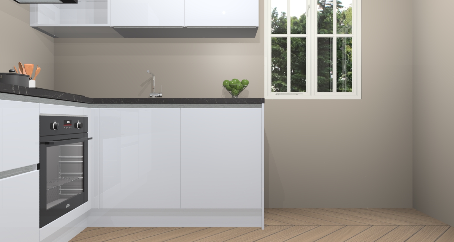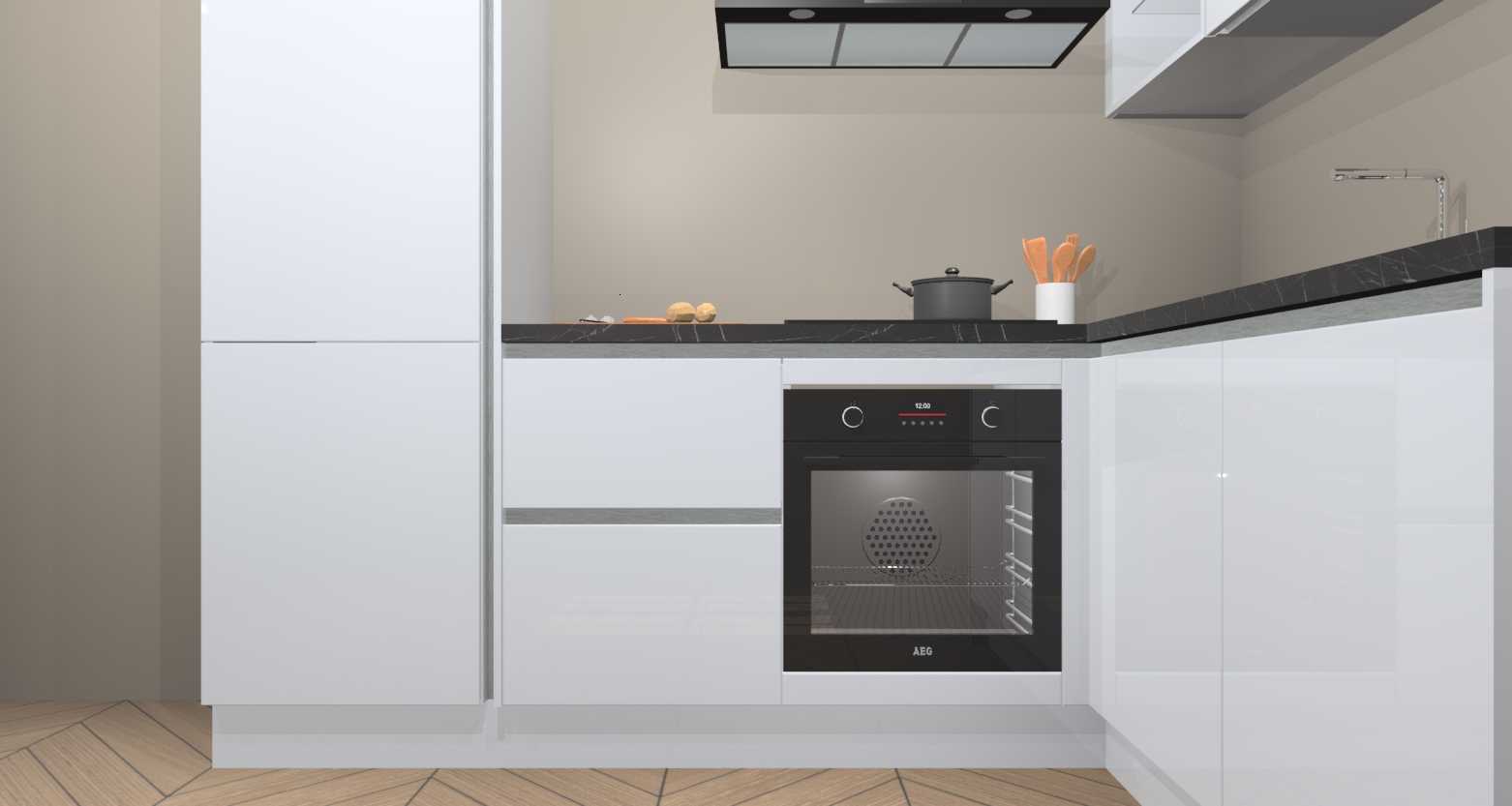 Onze keuken wordt voor geassembleerd geleverd in slechts 7 weken, waardoor u snel en eenvoudig met het installeren kan beginnen. Onze keuken omvat 5 inbouwapparaten: een oven, inductieplaat, afzuigkap, vaatwasser en koelkast. Deze zijn gemakkelijk na bestelling te upgraden. Onze keukens worden gemaakt in overeenstemming met de Duitse kwaliteitseisen, waardoor u verzekerd bent van een hoog kwaliteit product.