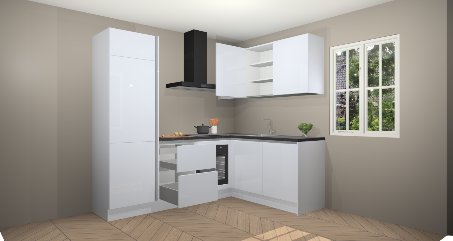 Bekijk voor uzelf wat de Sneeuwwitte Hoogglans greeploze keuken Calcutta te bieden heeft. U bent verzekerd van een geweldig resultaat en een overheerlijke ervaring met onze keuken, tegen een lage en vaste prijs. Laat ons helpen uw keuken om te toveren naar een droomkeuken.