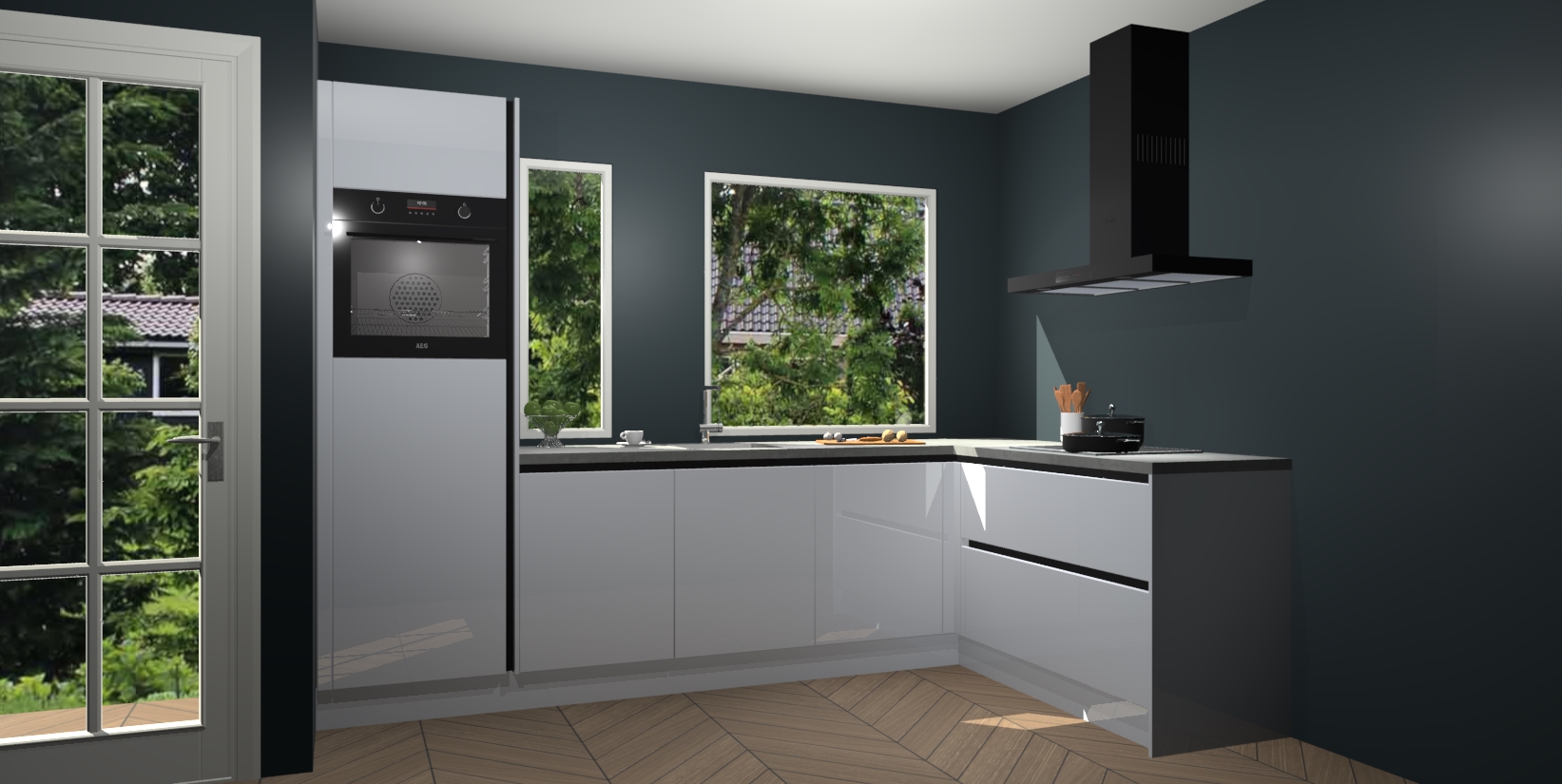 Deze complete keuken wordt geleverd met 5 inbouwapparaten: een oven, inductiekookplaat, afzuigkap, vaatwasser en koelkast.  De toestellen kunnen na bestelling ook gemakkelijk worden opgewaardeerd naar AEG. Bovendien is elke deur in deze keuken voorzien van handige softclose technologie voor eenvoudig gebruik! Als een leuke toevoeging zit in deze keuken ook een carrousel, zo hoef je niet meer de hoek in duiken om iets te pakken.