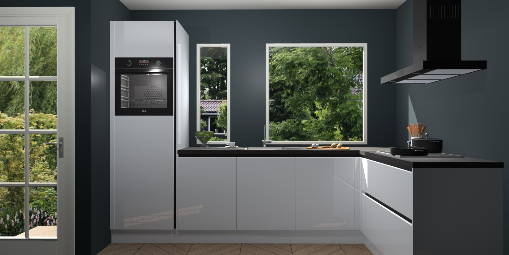 Deze complete keuken wordt geleverd met 5 inbouwapparaten: een oven, inductiekookplaat, afzuigkap, vaatwasser en koelkast. De toestellen kunnen na bestelling ook gemakkelijk worden opgewaardeerd naar AEG. Bovendien is elke deur in deze keuken voorzien van handige softclose technologie voor eenvoudig gebruik! Als een leuke toevoeging zit in deze keuken ook een carrousel, zo hoef je niet meer de hoek in duiken om iets te pakken.