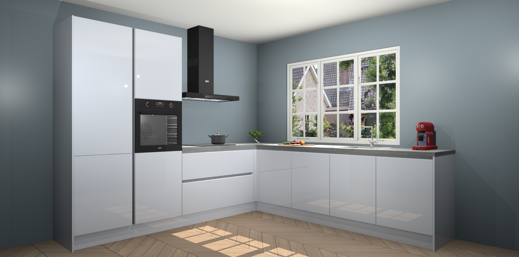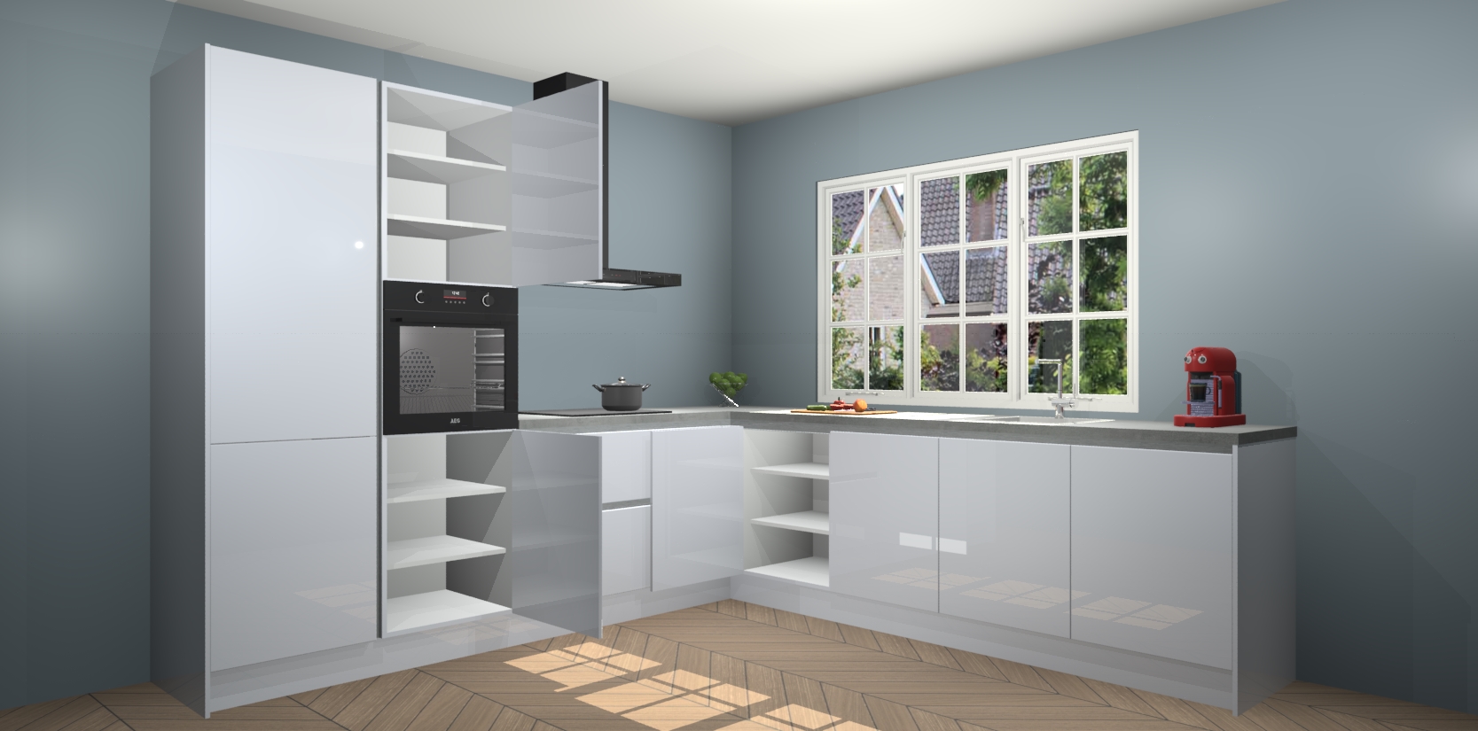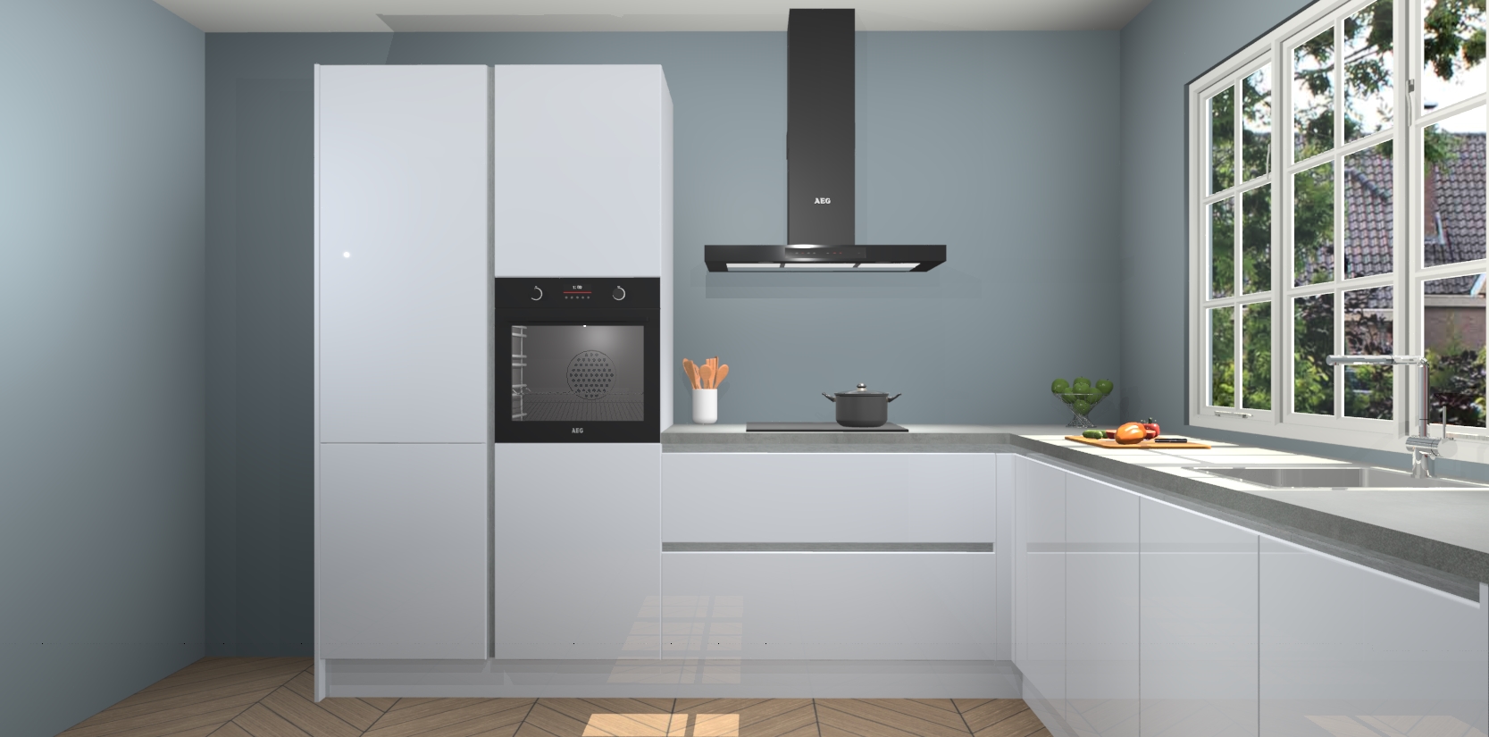De keuken heeft veel opbergruimte, waardoor u alle ingrediënten gemakkelijk bereikbaar hebt staan. En daarnaast bevat deze volledig uitgeruste keuken ook 5 ingebouwde apparaten: een oven, inductiekookplaat, afzuigkap, vaatwasser en koelkast. Deze zijn heel eenvoudig na bestellen te upgraden naar AEG als u dit wilt. Bovendien zijn de softclose-kastdeuren ideaal; geef ze gewoon even een tikje en ze sluiten automatisch met geruisloze precisie.