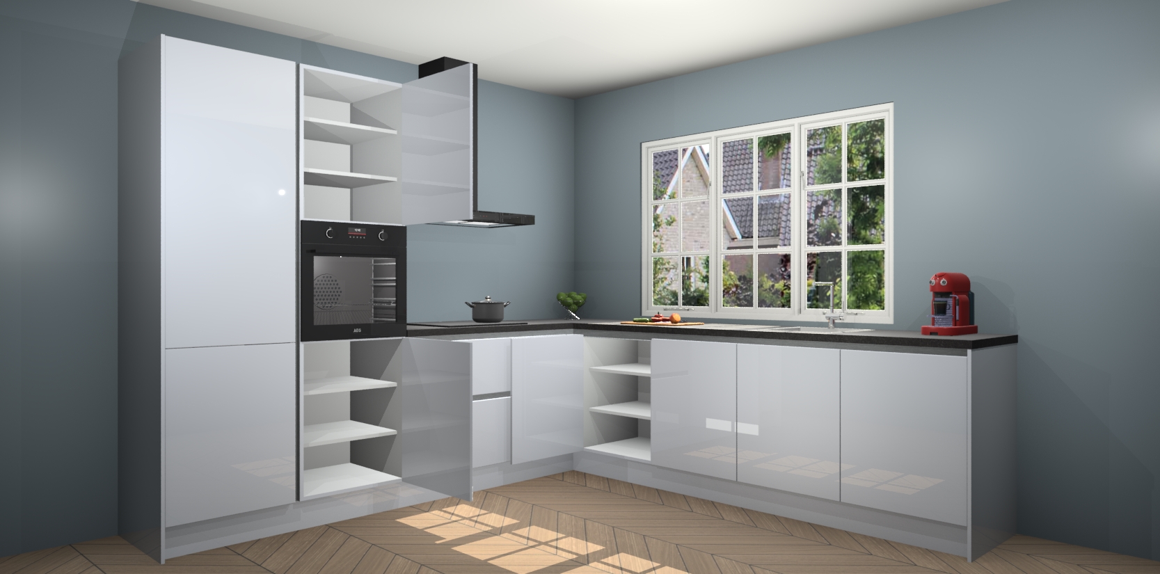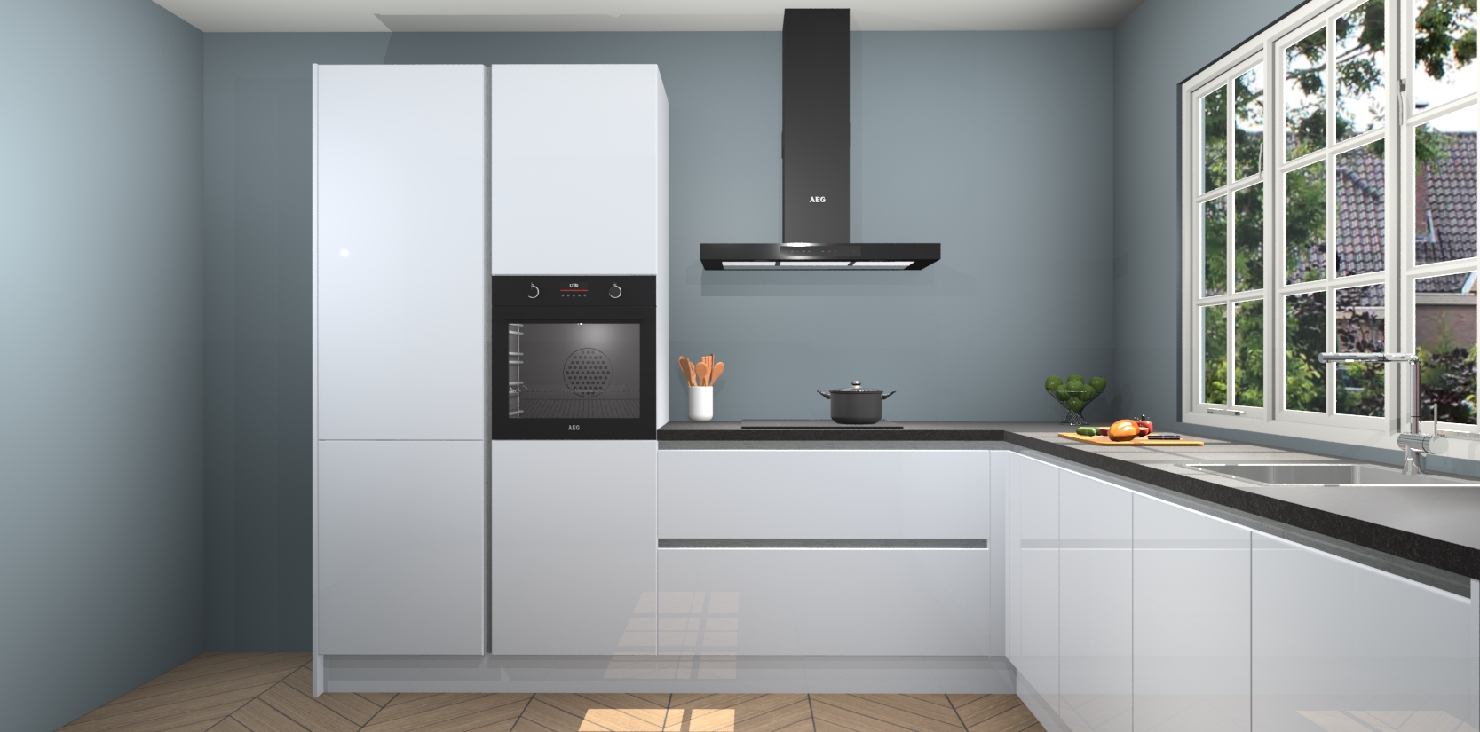De keuken heeft veel opbergruimte, waardoor u alle ingrediënten gemakkelijk bereikbaar hebt staan. En daarnaast bevat deze volledig uitgeruste keuken ook 5 ingebouwde apparaten: een oven, inductiekookplaat, afzuigkap, vaatwasser en koelkast. Deze zijn heel eenvoudig na bestellen te upgraden naar AEG als u dit wilt. Bovendien zijn de softclose-kastdeuren ideaal; geef ze gewoon even een tikje en ze sluiten automatisch met geruisloze precisie.