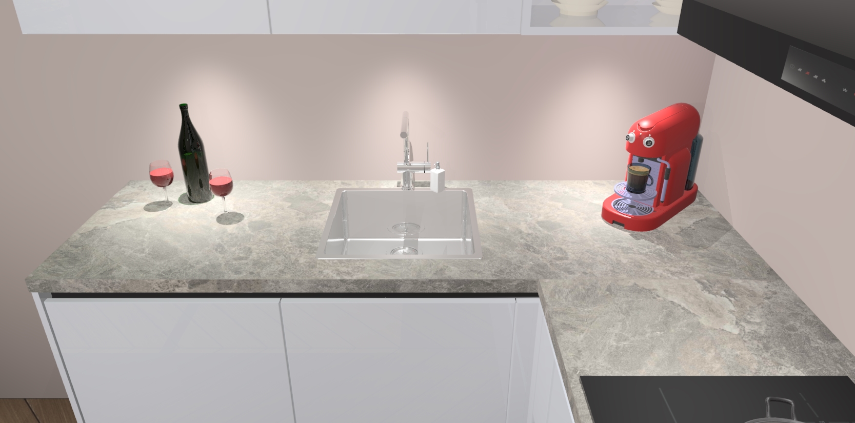 - Bij een hoekwerkblad zijn de hoeken in gevreesd en op maat gemaakt