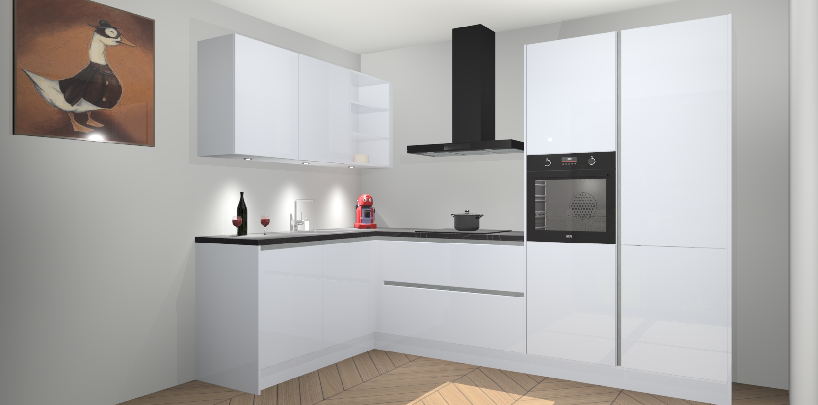 De Sneeuwwitte Hoogglans greeploze keuken Cognac is een adembenemend ontwerp met een modern en tijdloos uiterlijk. Deze luxe keuken straalt echt aristocratisch uit, waardoor uw koken plezieriger zal worden! Het prachtige design begint bij de hoekkeuken, wat perfect past bij elk type interieur. Bovendien bevat deze hoogwaardige set vijf inbouwapparaten - van oven tot koelkast - die via bestelling naar AEG geüpgraded kunnen worden!