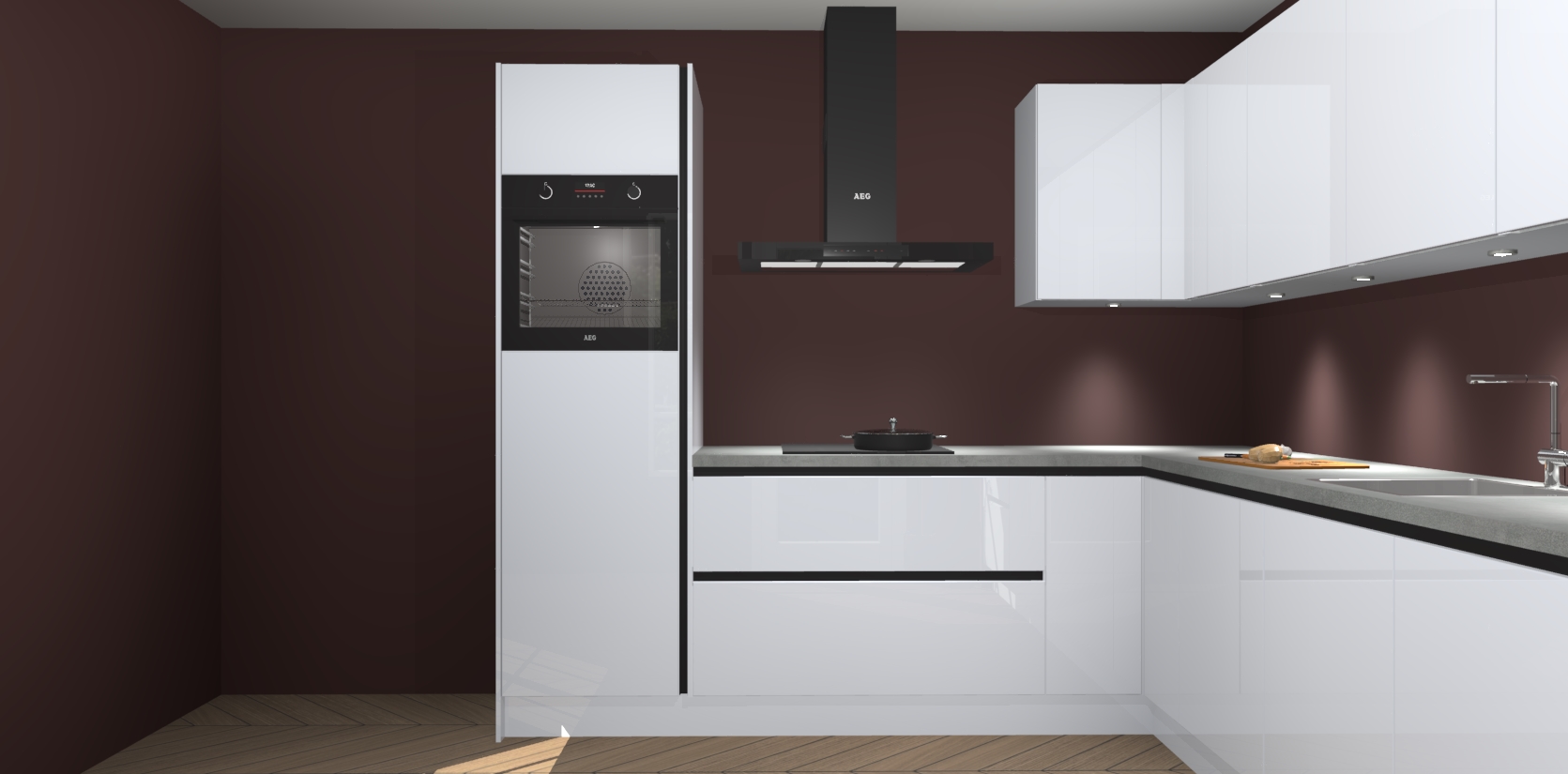 De Sneeuwwitte hoogglans greeploze keuken Debar is uitgerust met vijf inbouwapparaten die elke kooktaak handig en efficiënt maken. Een oven, inductiekookplaat, afzuigkap, vaatwasser en koelkast zijn standaard, maar kunnen na bestelling eenvoudig worden geupgrade naar AEG. Profiteer vervolgens van de softclose deuren voor snelle toegang en geruisloze toegang.