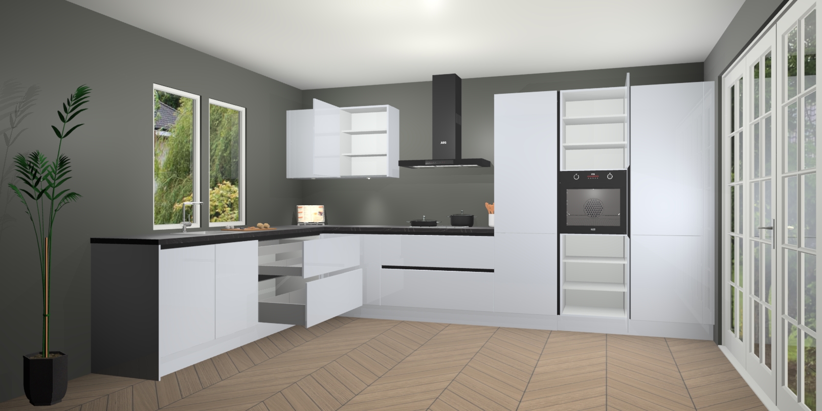 Heeft u nog apparatuur nodig? Geen probleem: de Sneeuwwitte hoogglans greeploze keuken Debrecen bevat vijf ingebouwde apparaten - een oven, inductiekookplaat, afzuigkap, vaatwasser en koelkast - die gemakkelijk kunnen worden bijgewerkt naar AEG na bestelling. En als dat nog niet genoeg is; onze kasten worden pre-geassembleerd geleverd en zijn verkrijgbaar tegen een vastgeroeste lage prijs! U hoeft nooit meer te zoeken naar goede kwaliteit en service want onze producten hebben echt Duitse kwaliteit.